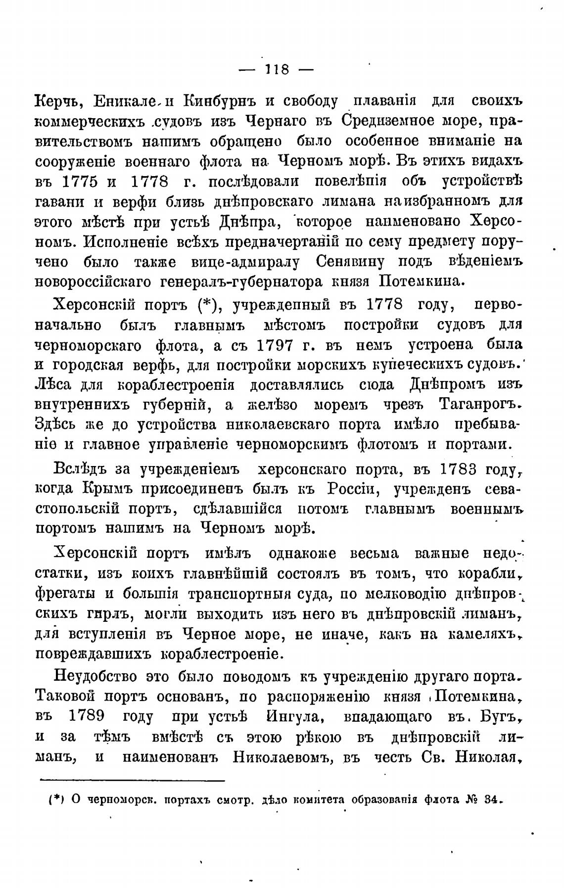 ( * ' О черноморсв. портахъ смотр. д±ло комитета 06pa30BaniR флота У2 34-
