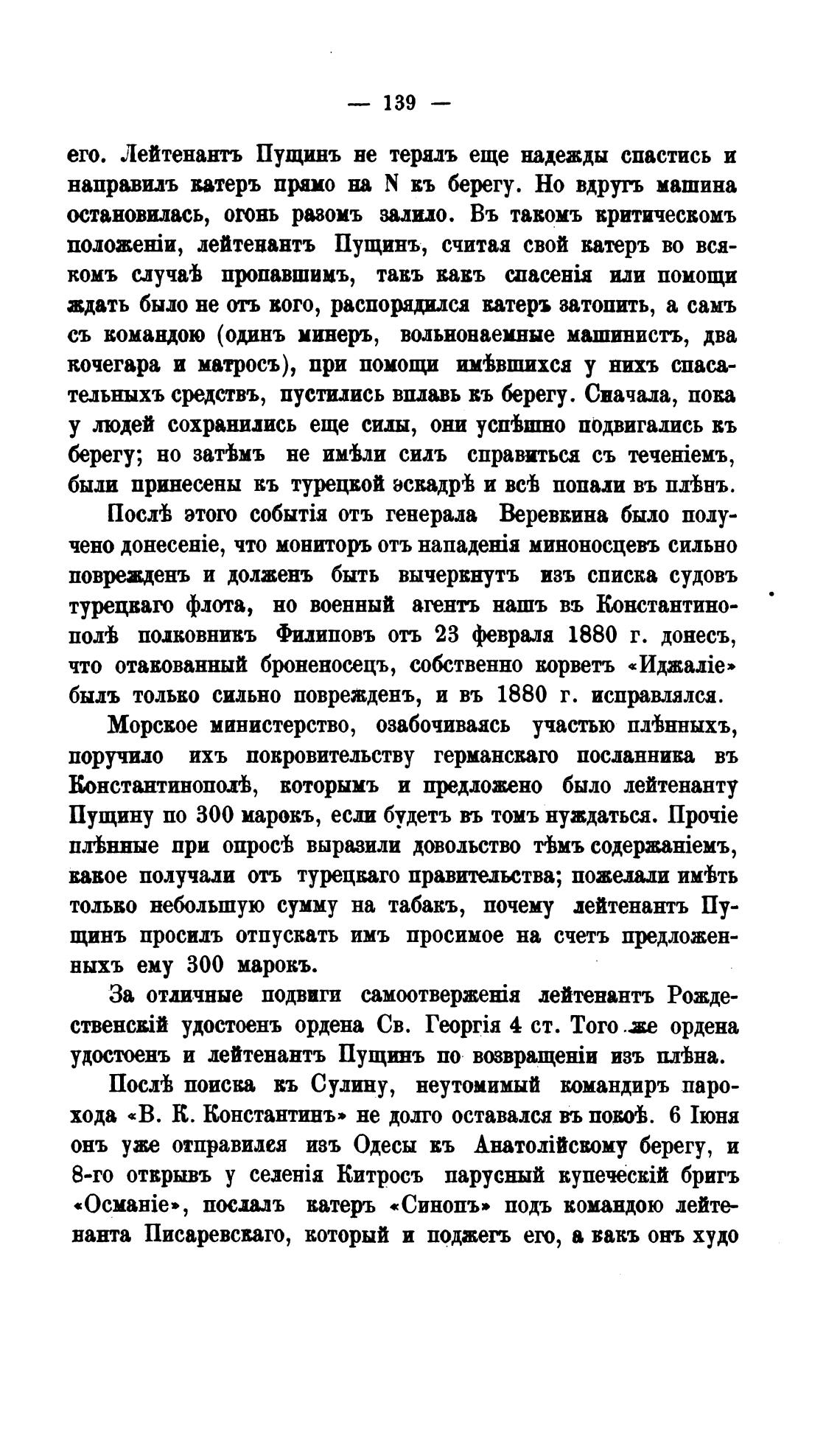 его. Лейтенанть Пущинъ не терядъ еще надежды спастись и