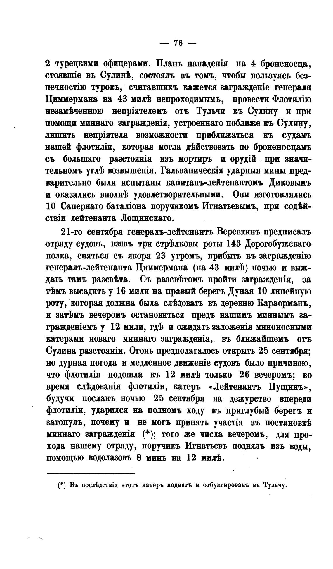 ( * ) Въ этотъ ватеръ поднять и отбуксированъ въ Тудьчу.