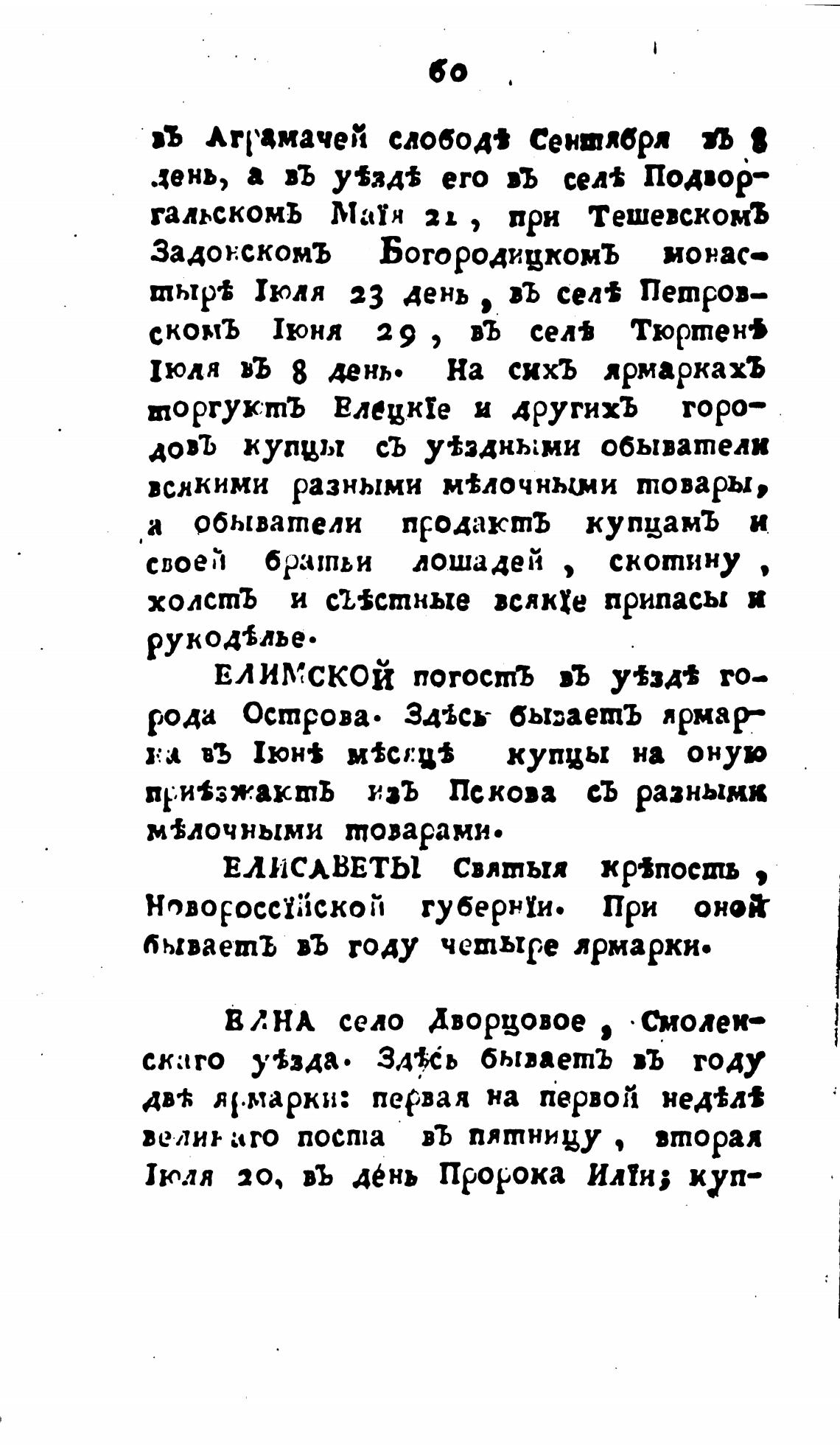 бываетЪ въ году четыре ярмарки.