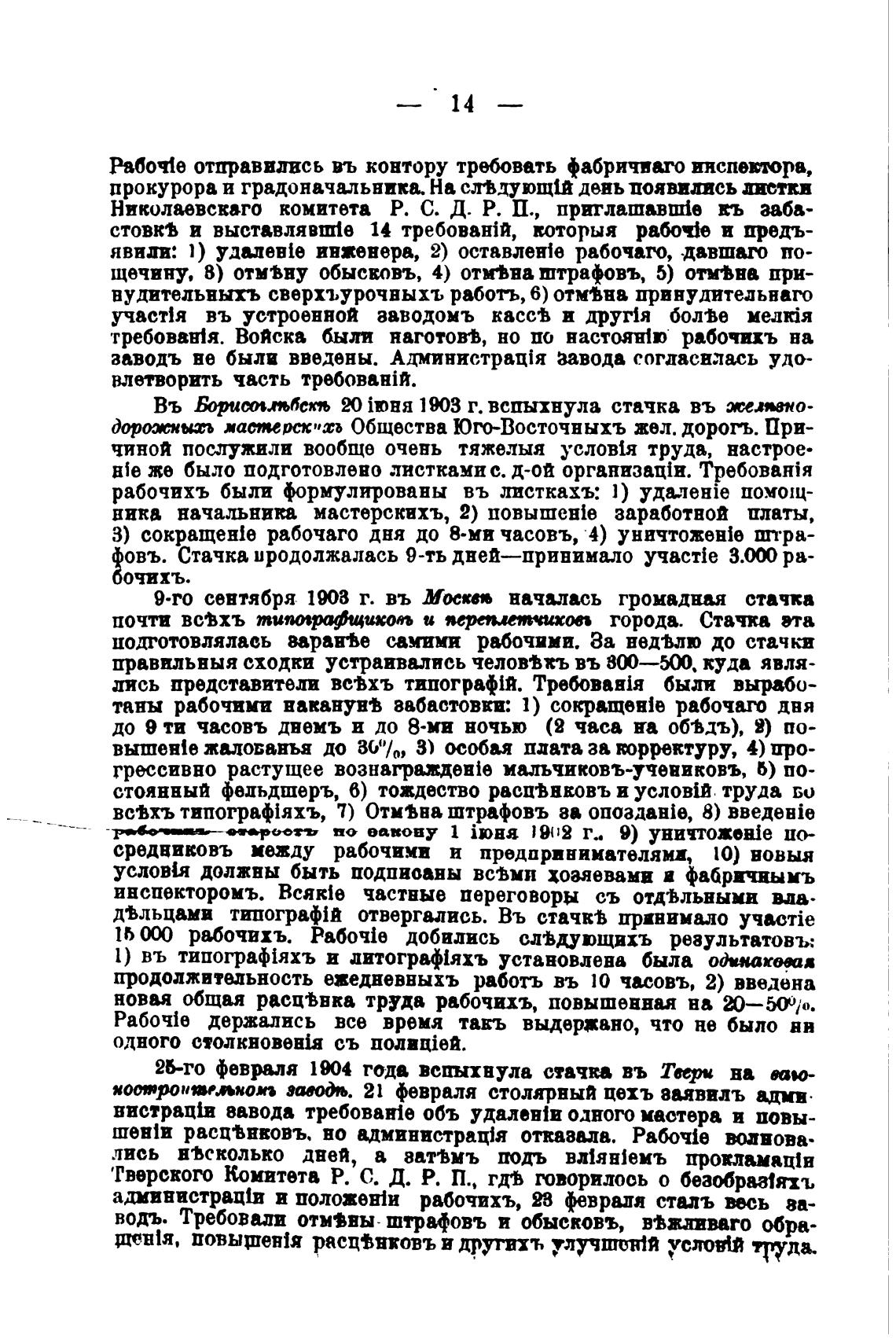 З) сокращен:е рабочаго дня до 8-ми часовъ, 4) уничтожен:е штра-