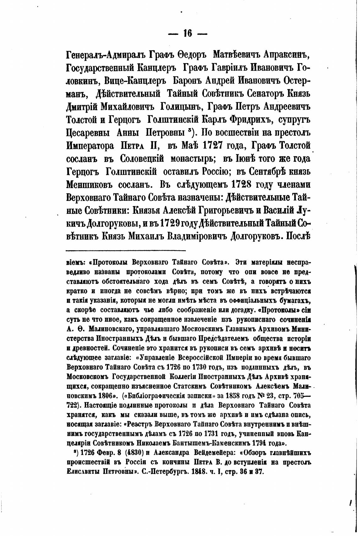 Верховнаго Тайнаго Сов%та съ 1726 по 1730 тодъ, изъ под.шнныхъ дЫъ, въ