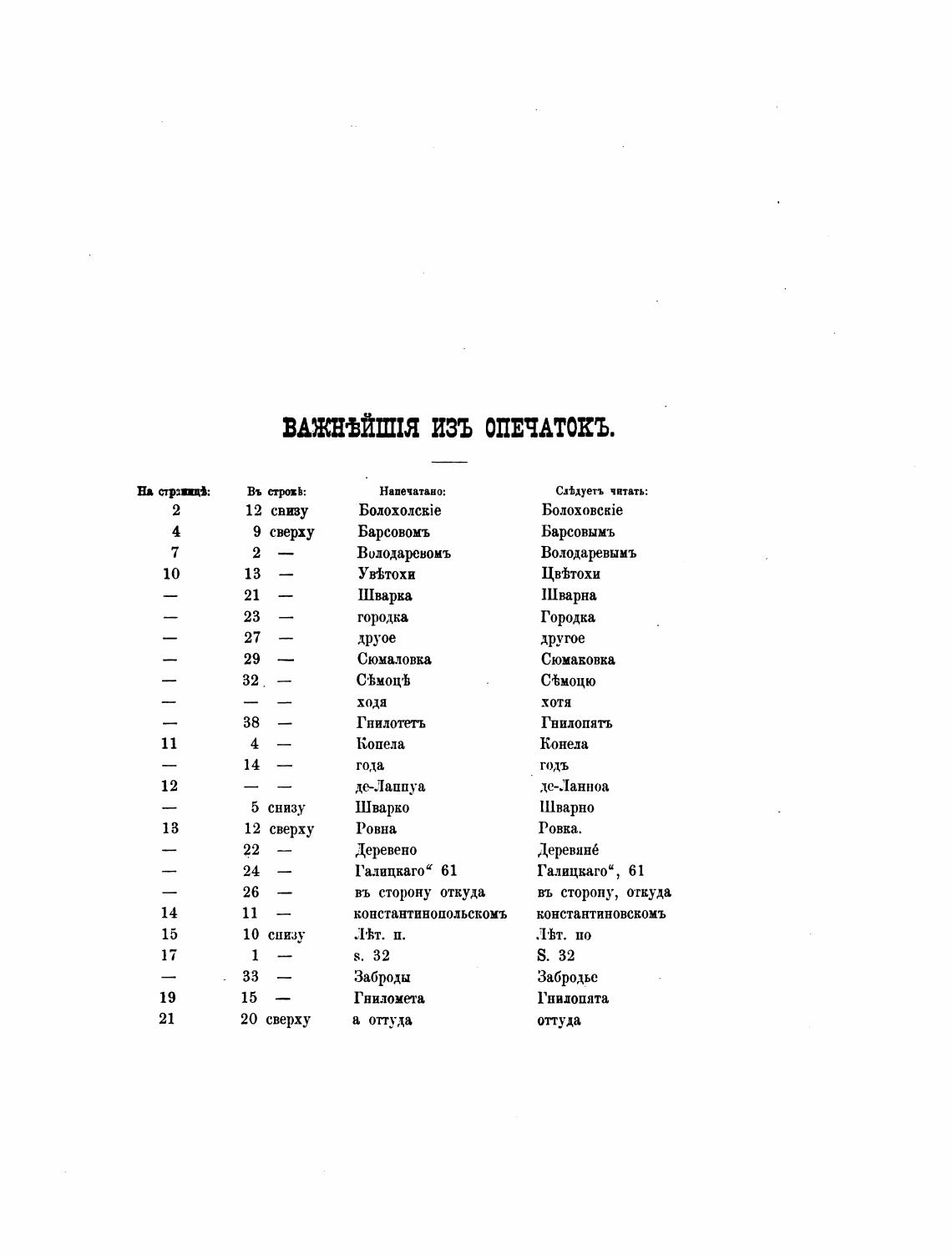 ВАЖНфЙШIЯ ИЗЪ ОПЕЧАТОКЪ.