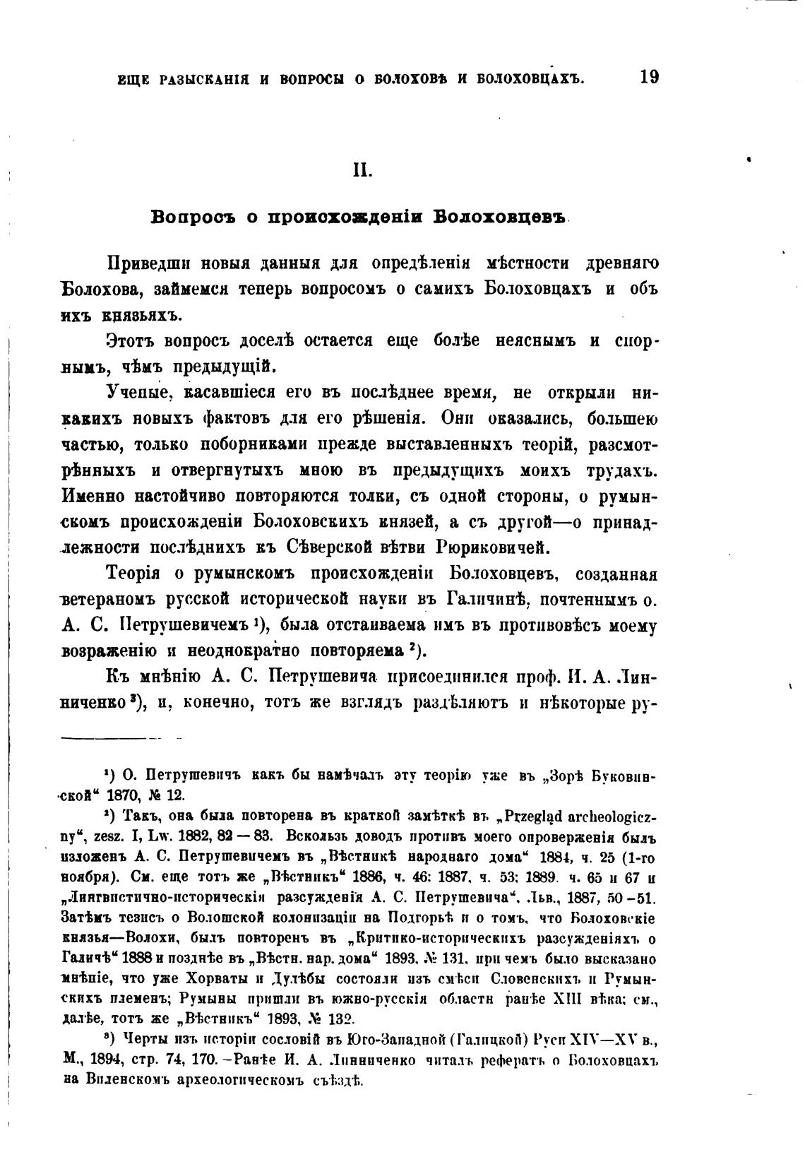 М., 1894, стр. 74, 170. —Ран*е И. А. Линниченко читаль рефератъ о Болоховцахт,