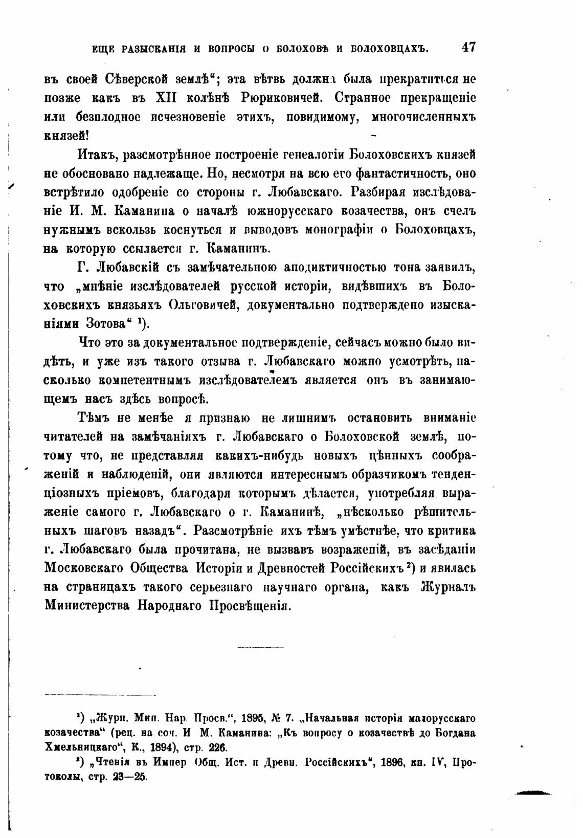 нужнымъ вскользь коснуться и выводовъ о Болоховцахъ,