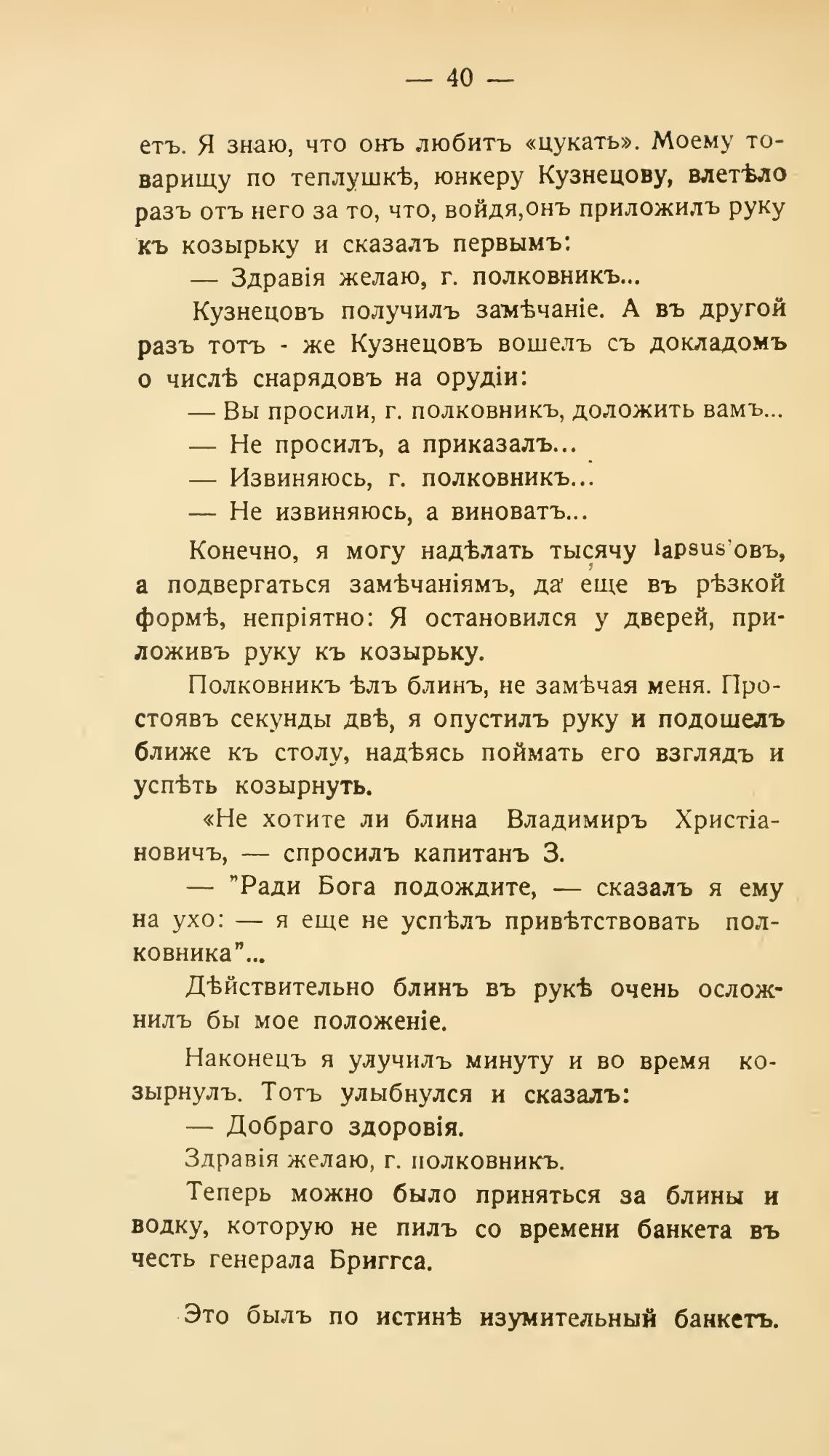 Полковникъ 'Ьлъ блинъ, не зам±чая меня. Про-