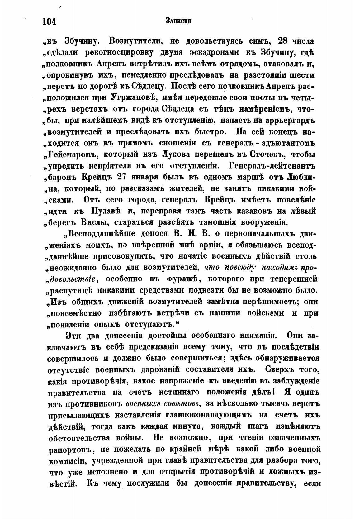 „верстъ по дорой кь С'ћдлецу. Пос.тЬ сего полковникъ Анрепъ рас-