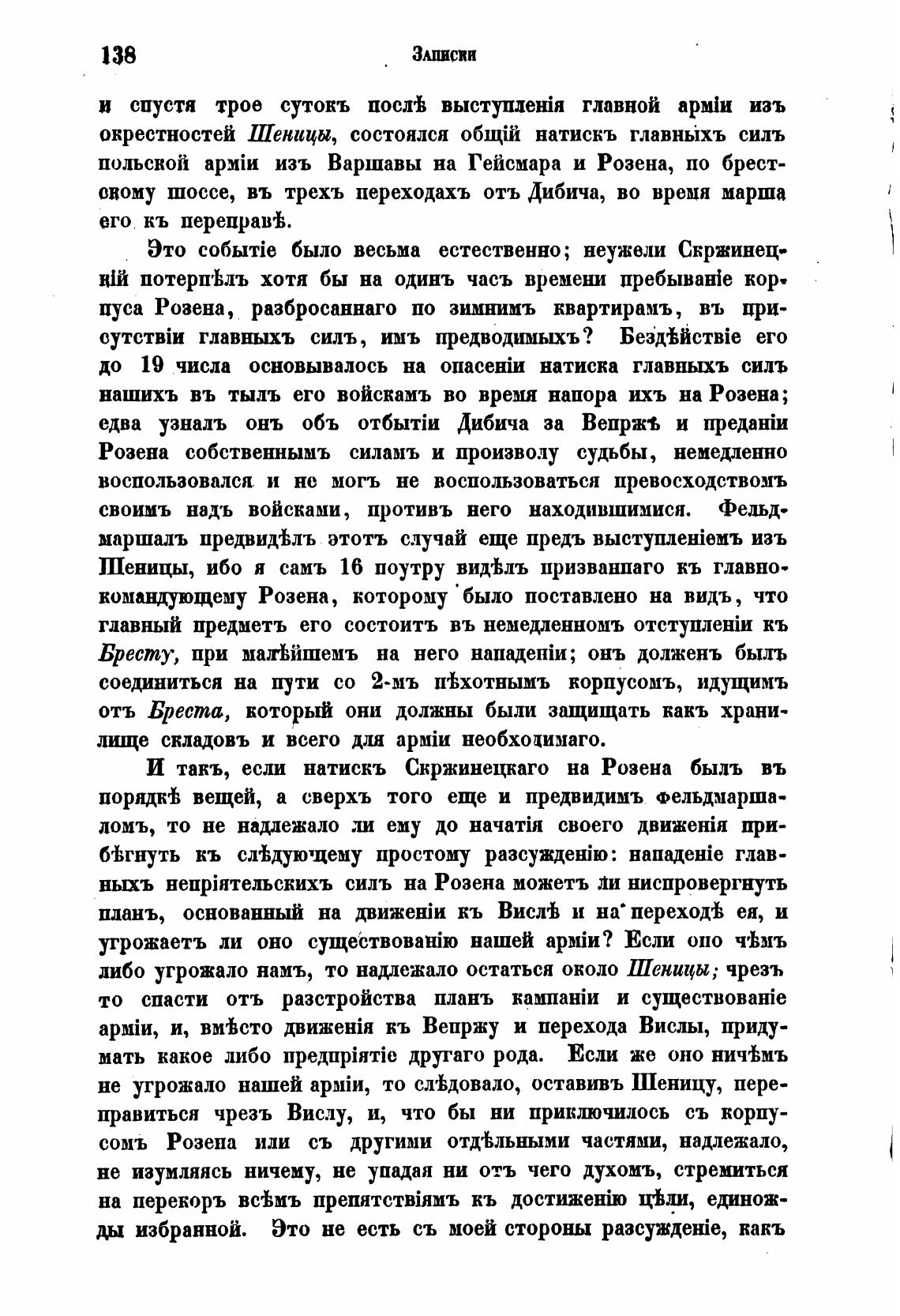 либо угрожало намъ, то надлежало остаться около Шеницн; чрезъ