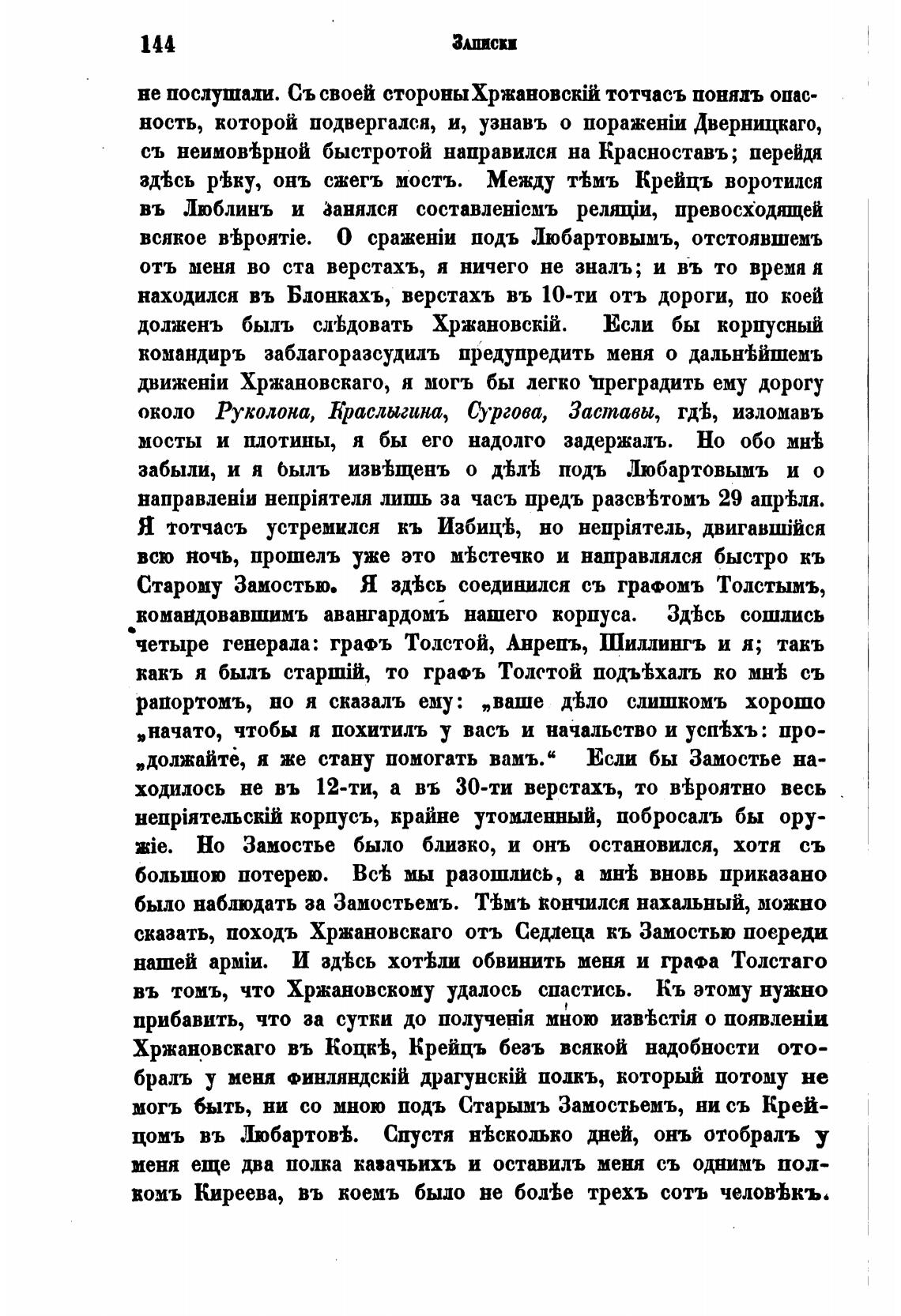 могъ быть, ни со мною подъ Старымъ Замостьемъ, ни съ Крей-