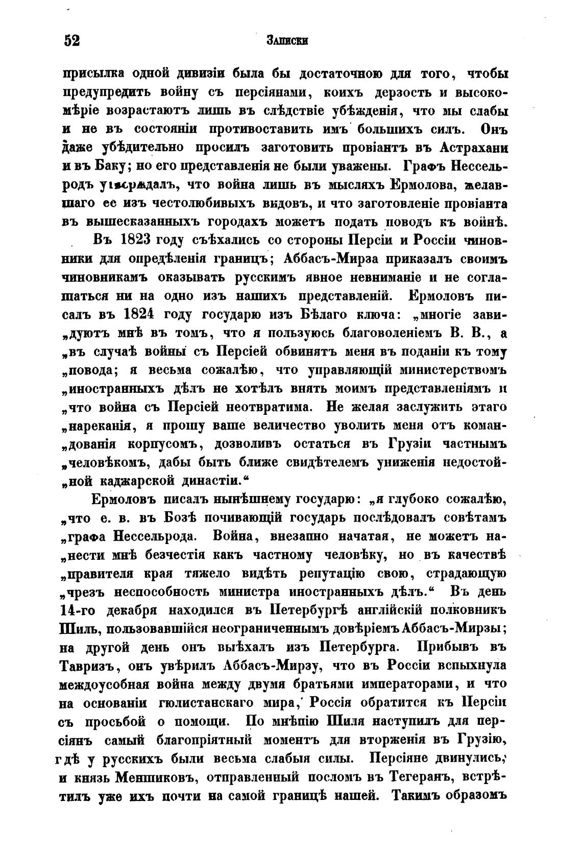 родъ уморадалъ, что война лишь въ мысляхъ Ермолова, желав-
