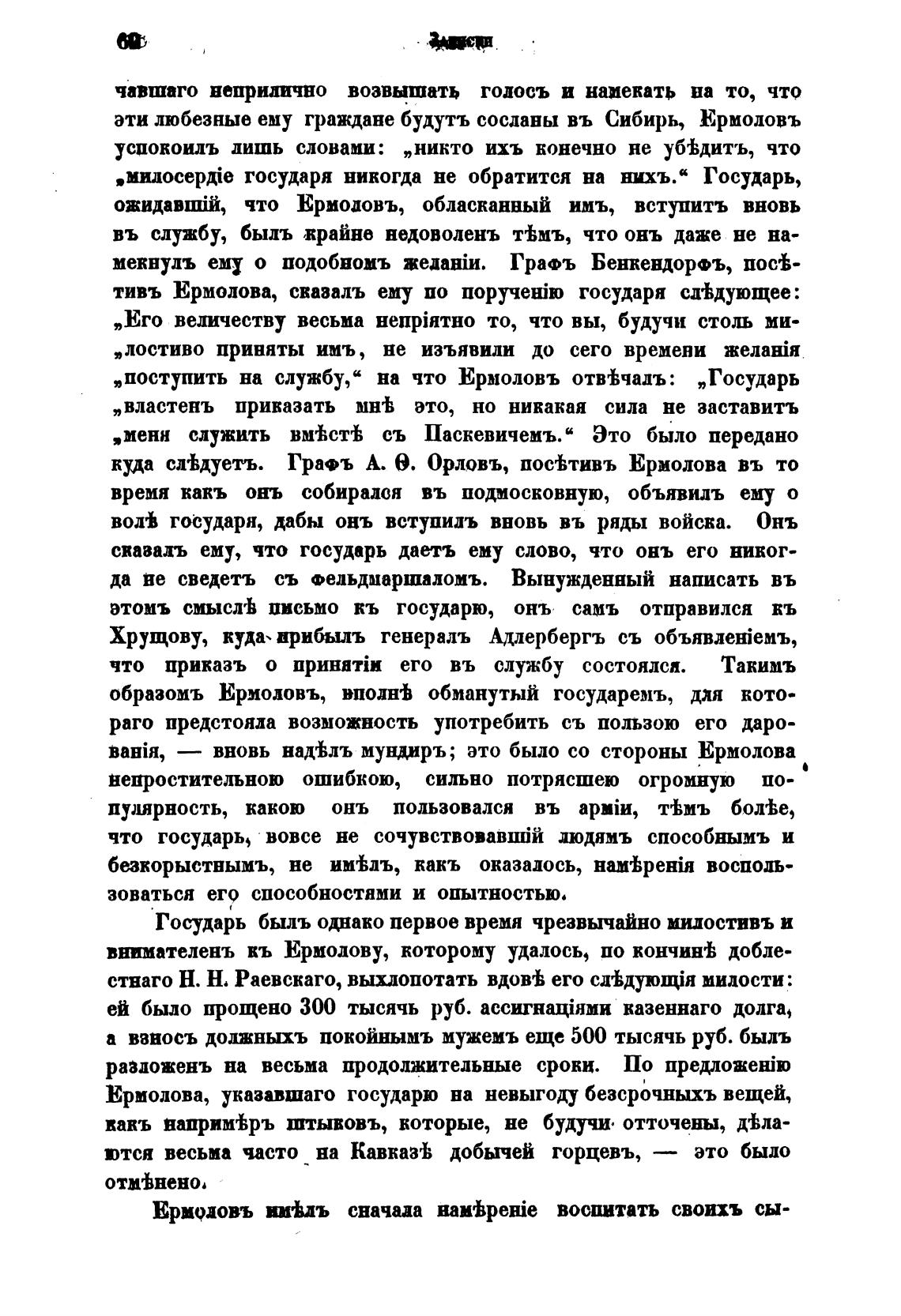 „поступить на службу,“ на что Ермоловъ отв%чадъ: „Государь