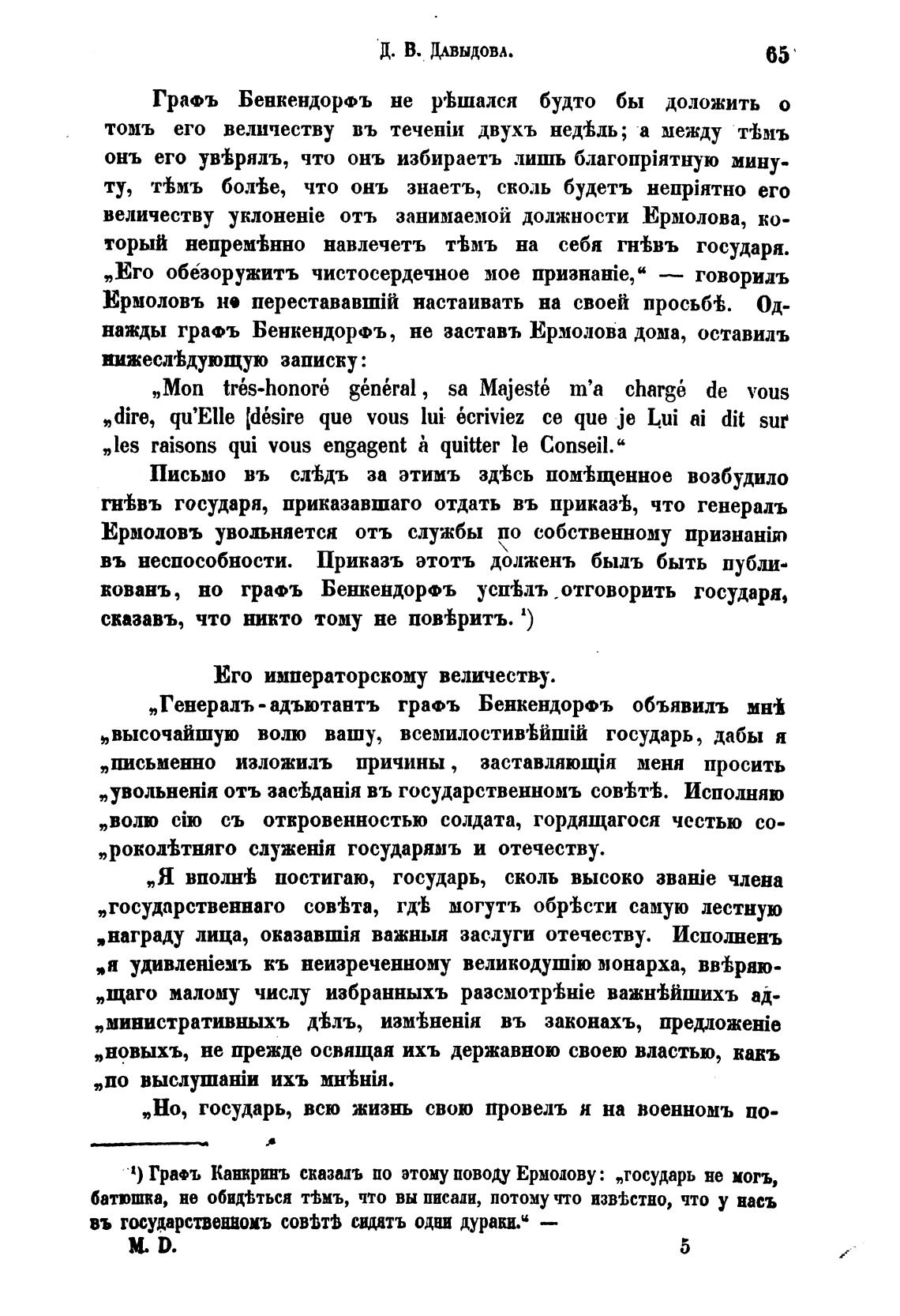 -1) Град Канкринъ сказалъ по этому поводу Ермодову: „государь не могъ,