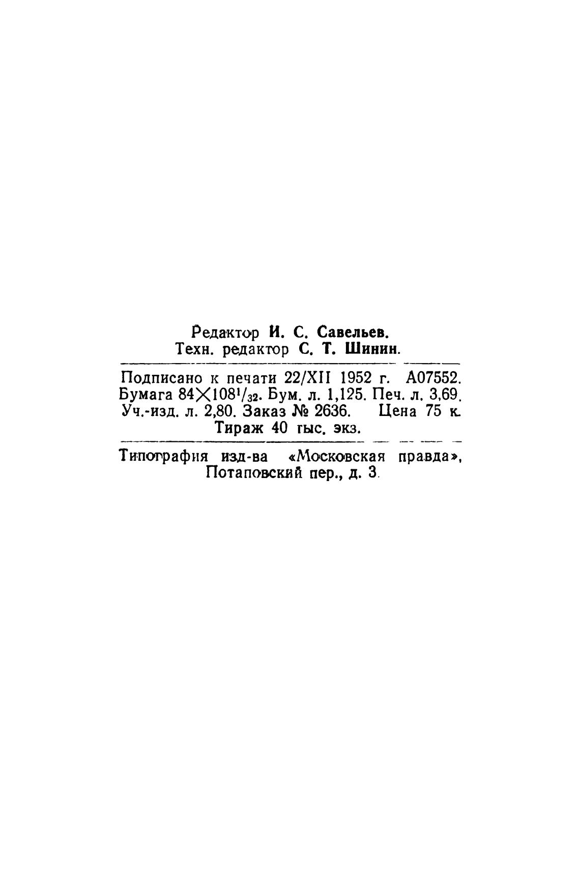 подписано к печати 22/хп 1952 г. А07552.