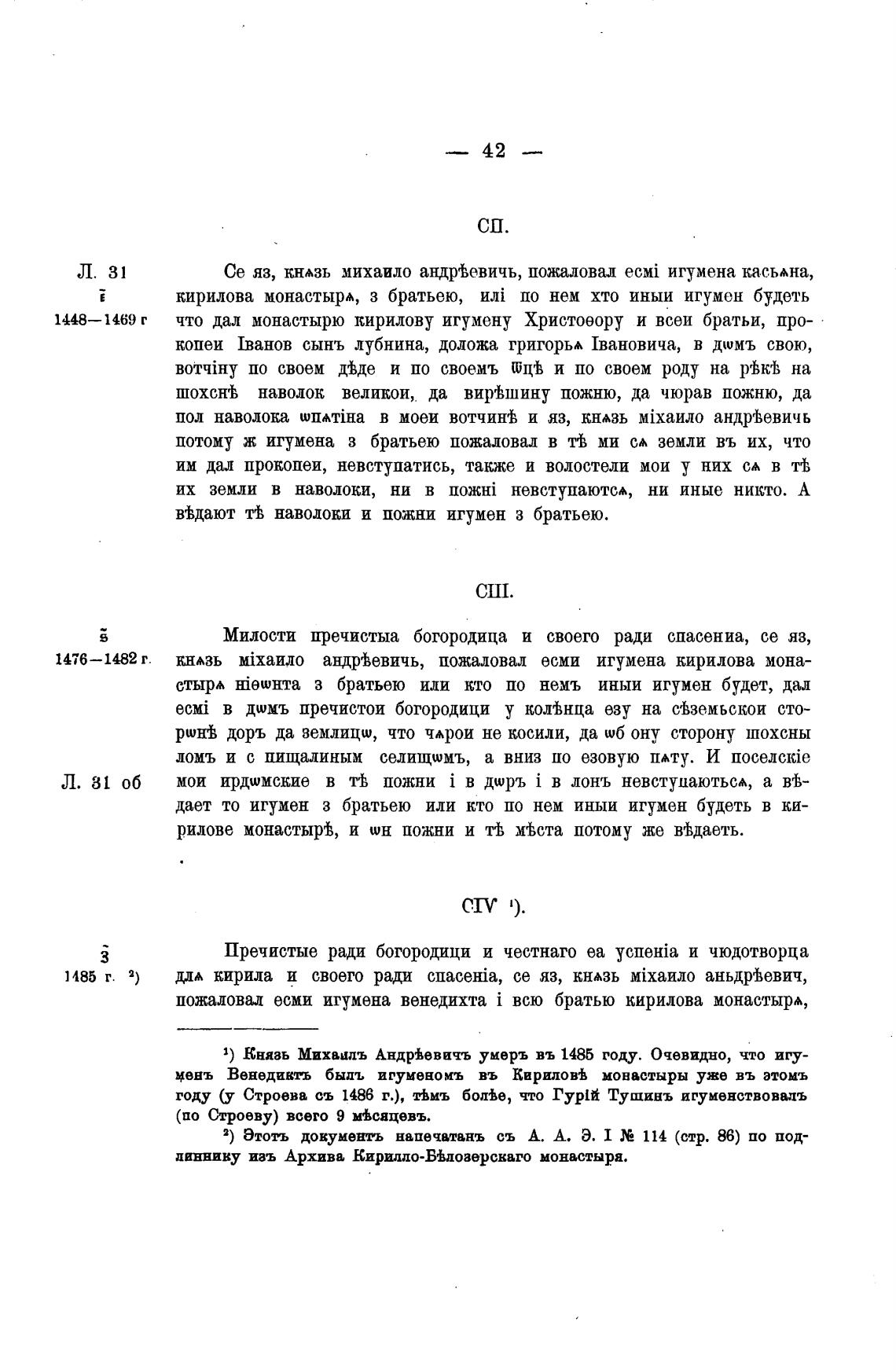 3) Князь Михаилъ АндрВевичъ умерь въ 1486 году. Очевидно, что игу-