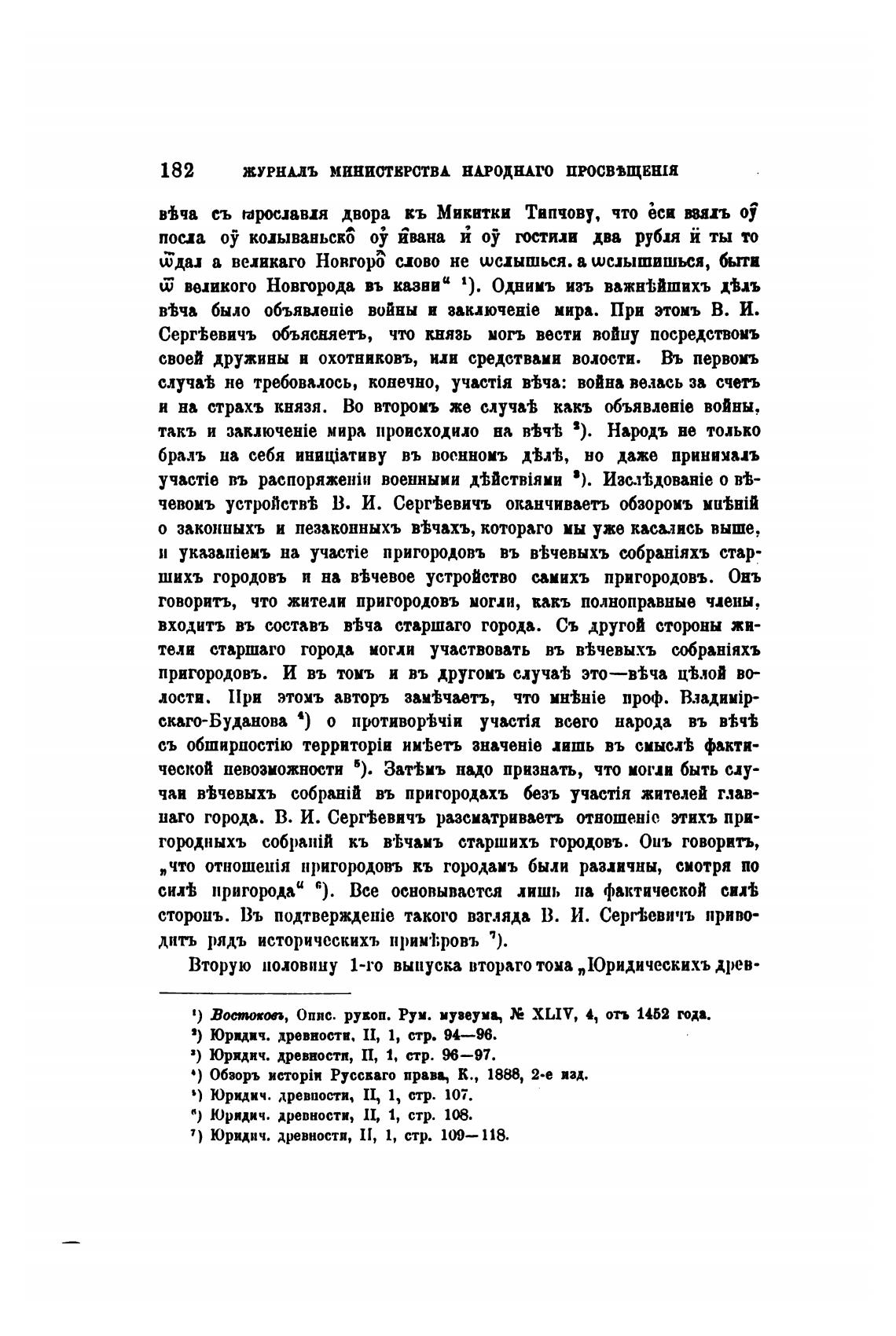 наго города. В. И. Серг%евячъ разсматривветь 0THomeHic этихъ при-