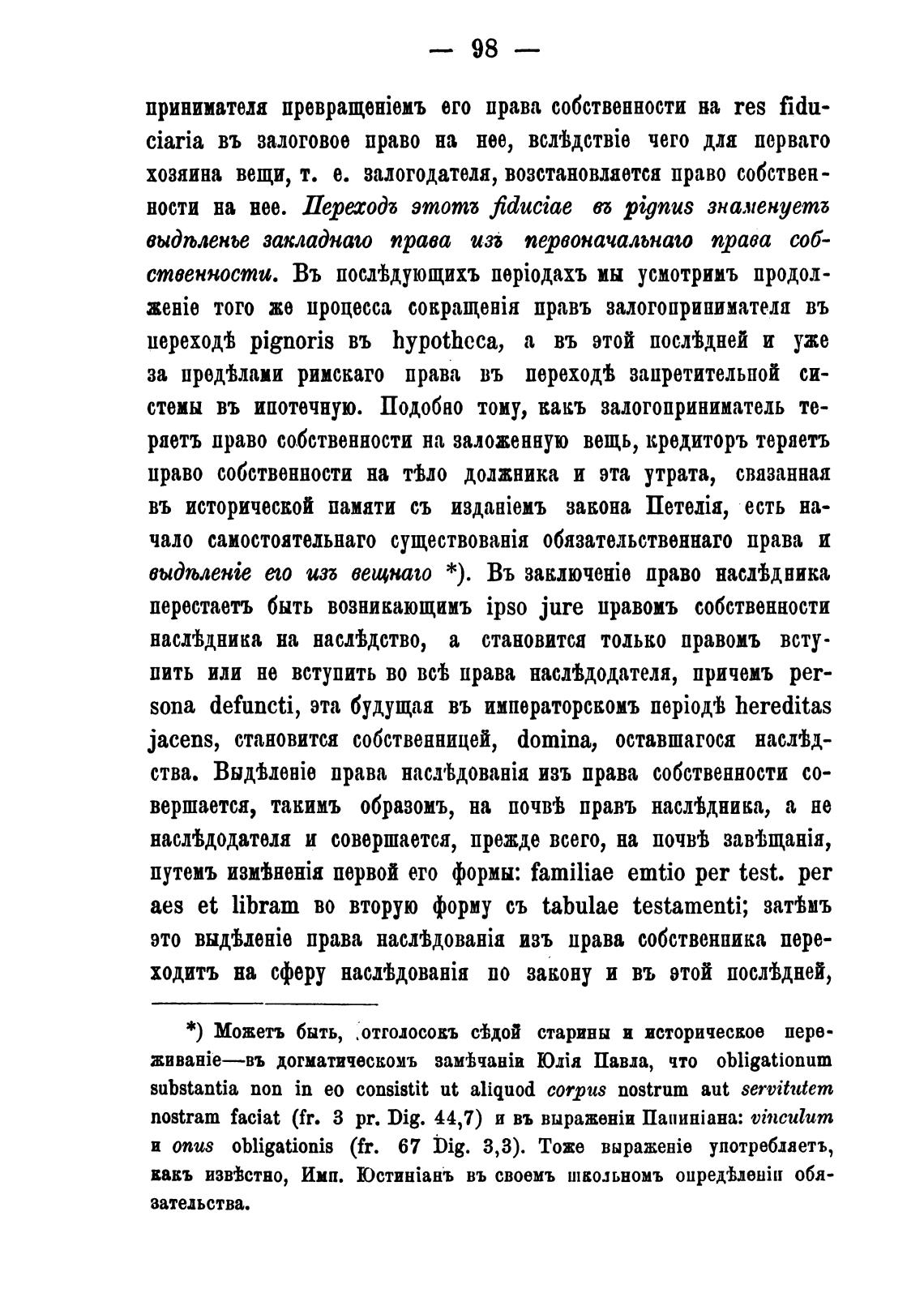 и onus obligationis (fr. 67 Dig. 3,3). Тоже употребдаетъ,