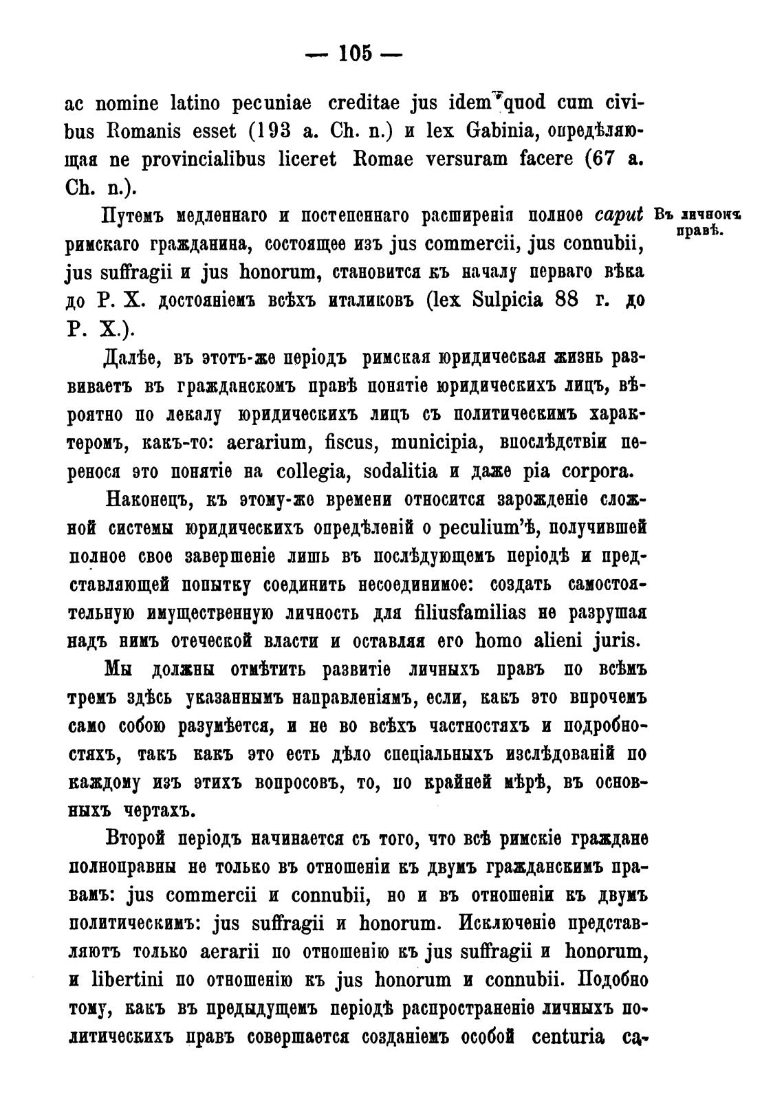 римскаго гражданина, состоящее изъ jus commercii, jus connubii,