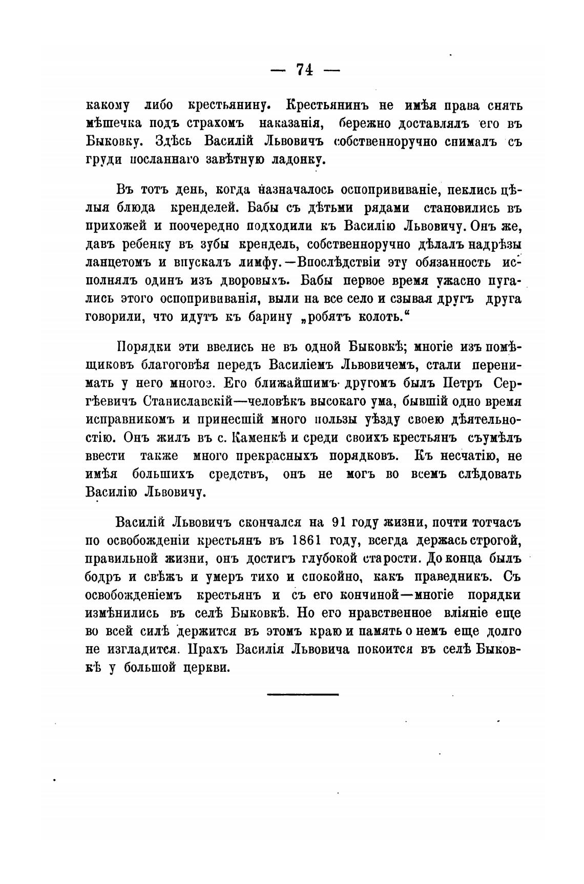 не изгладится. Прахъ Васи.тйя Львовича покоится въ Быков-