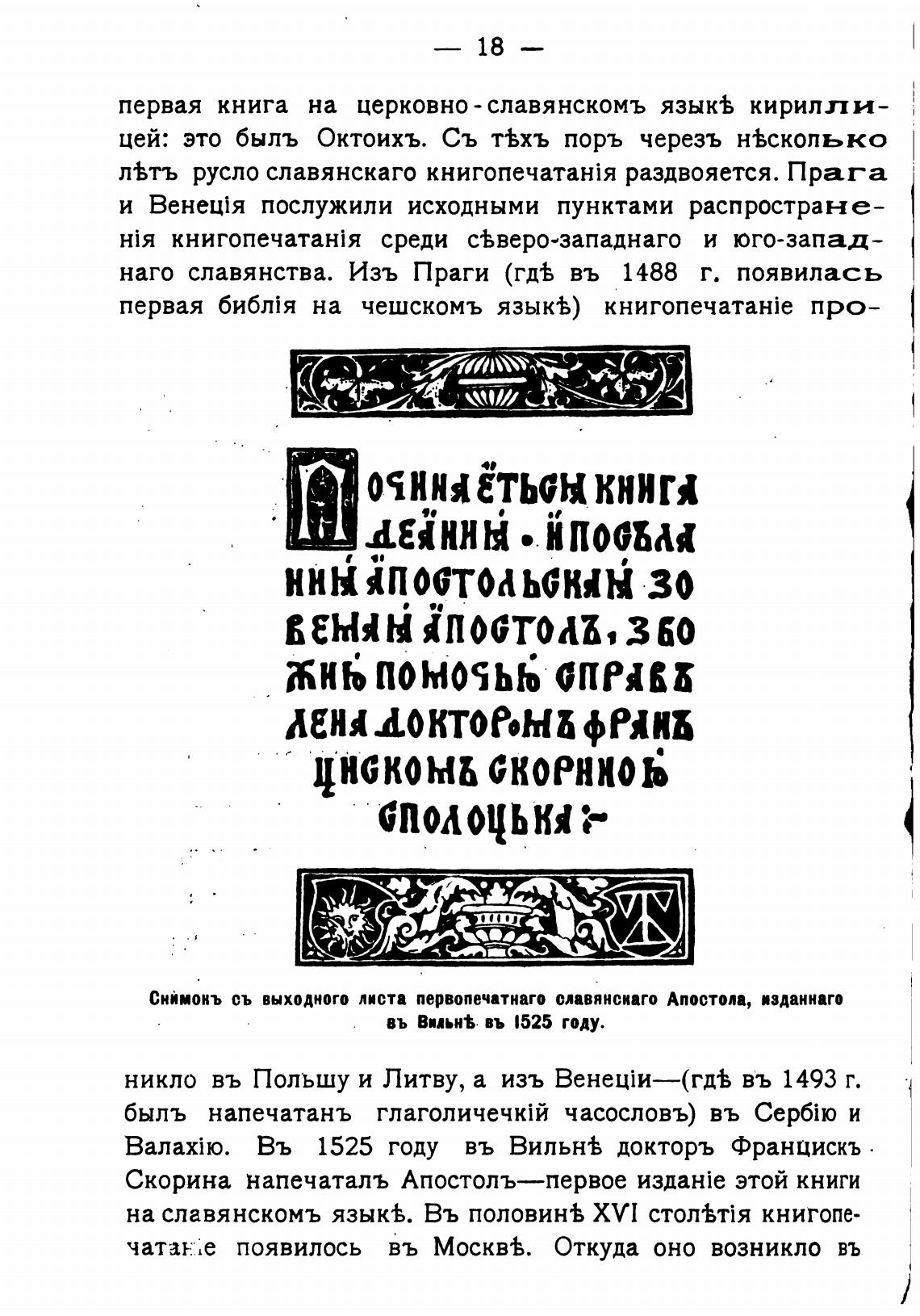 Скорина напечаталъ Апостолъ—первое этой книги