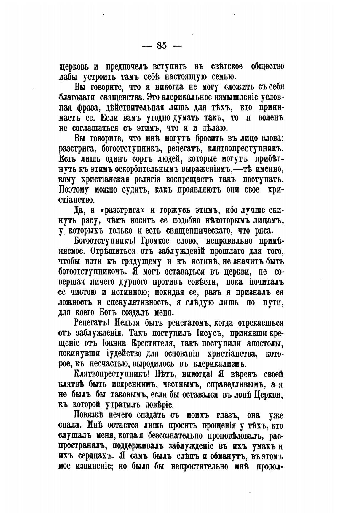 богоотступникомъ. Я могъ оставадься въ церкви, не со-