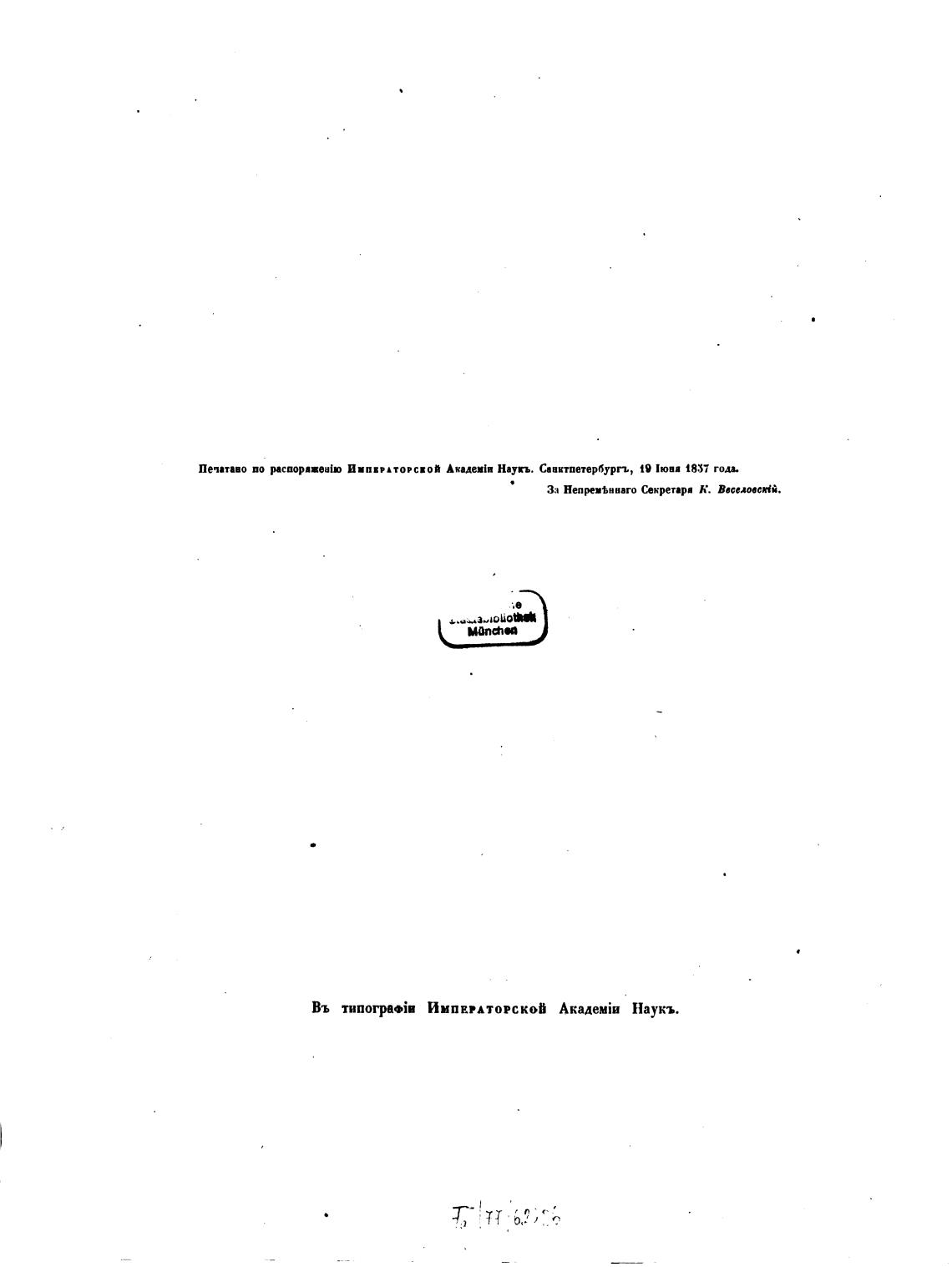 Въ типогрЫв Императорской Наукъ.