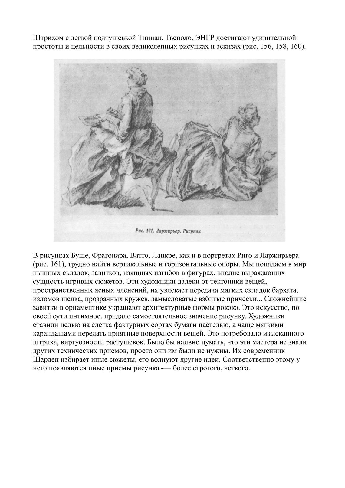 простоты и цельности в своих великолепных рисунках и эскизах (рис. 156, 158, 160).