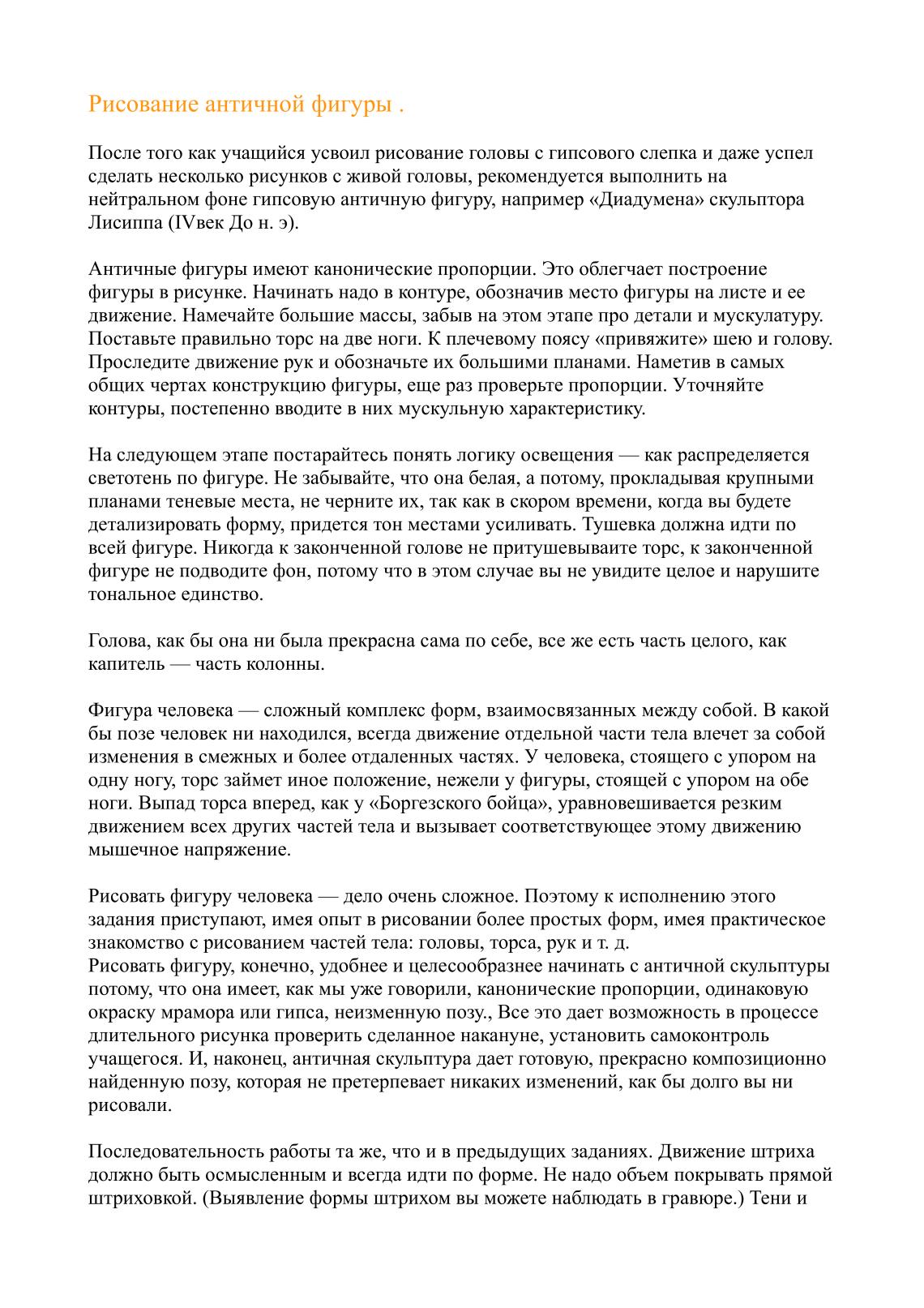 Рисование античной фигуры .