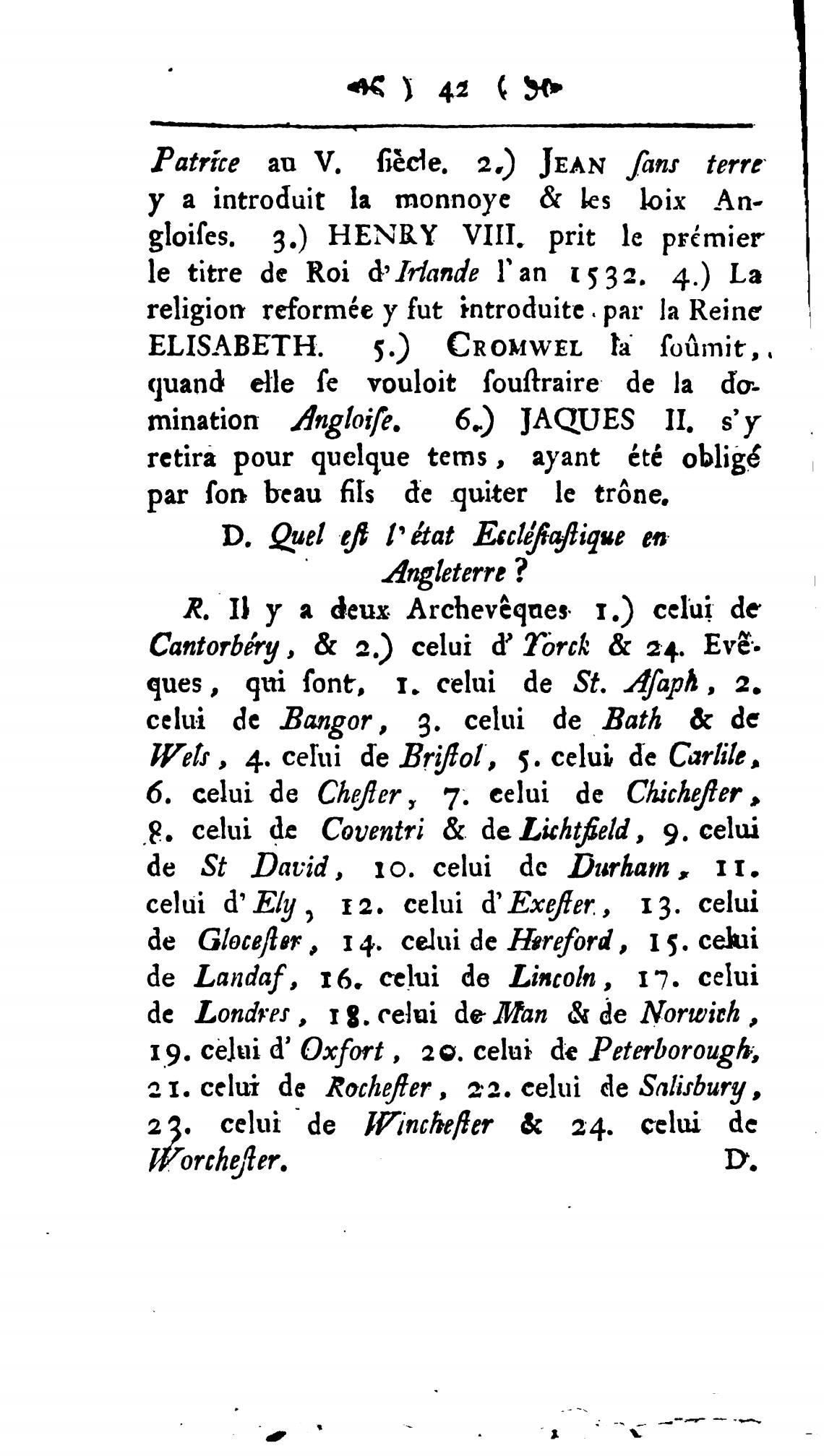 celui d'Ely, п. celui d' Exe]er., 13. celui
