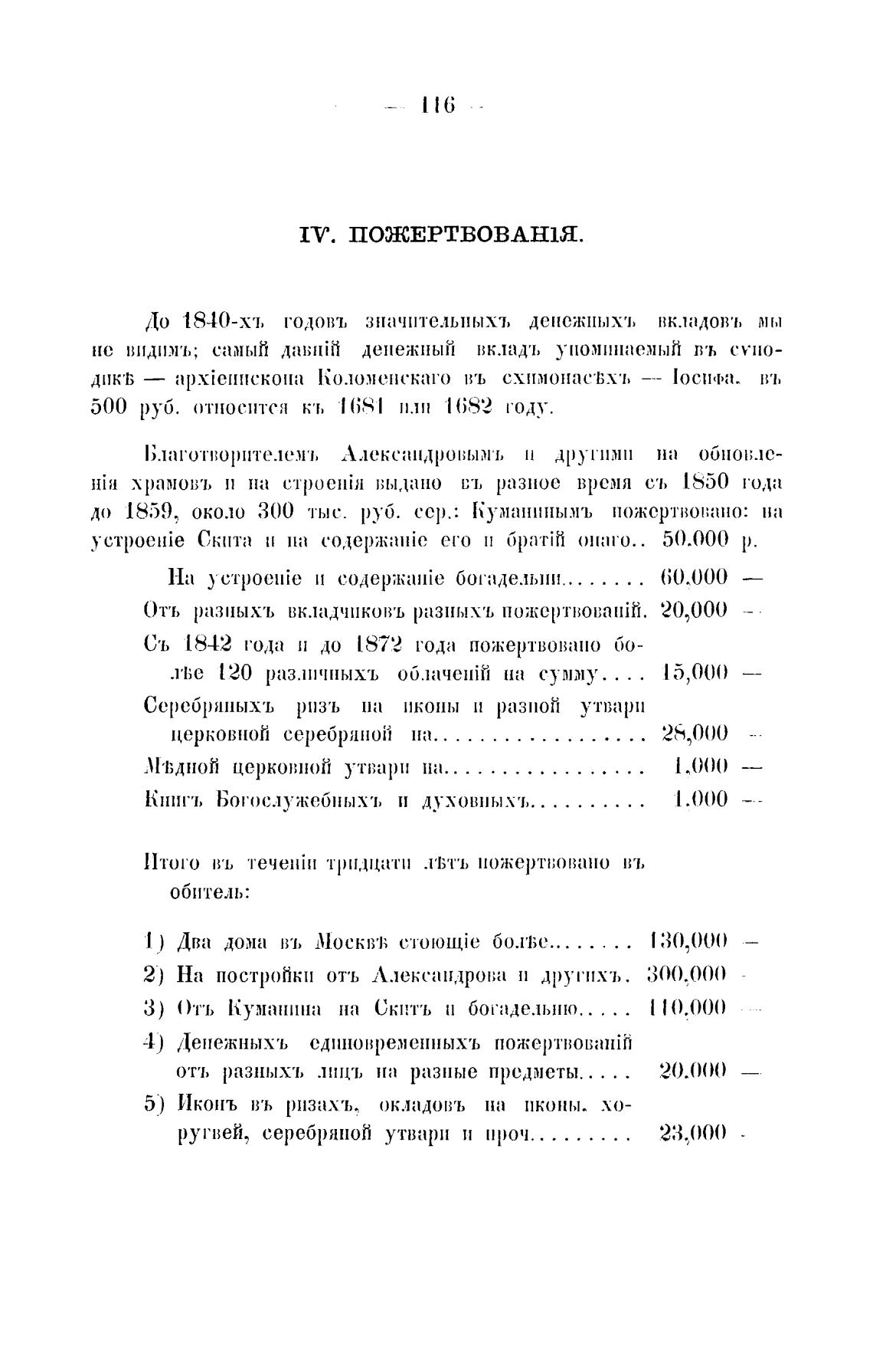 IV. ПОЖЕРТВОВАНIЯ.