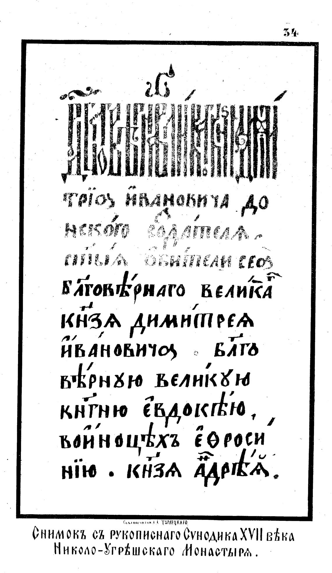 Николо-УгрКшскаго ШОНАСТЫРЊ.