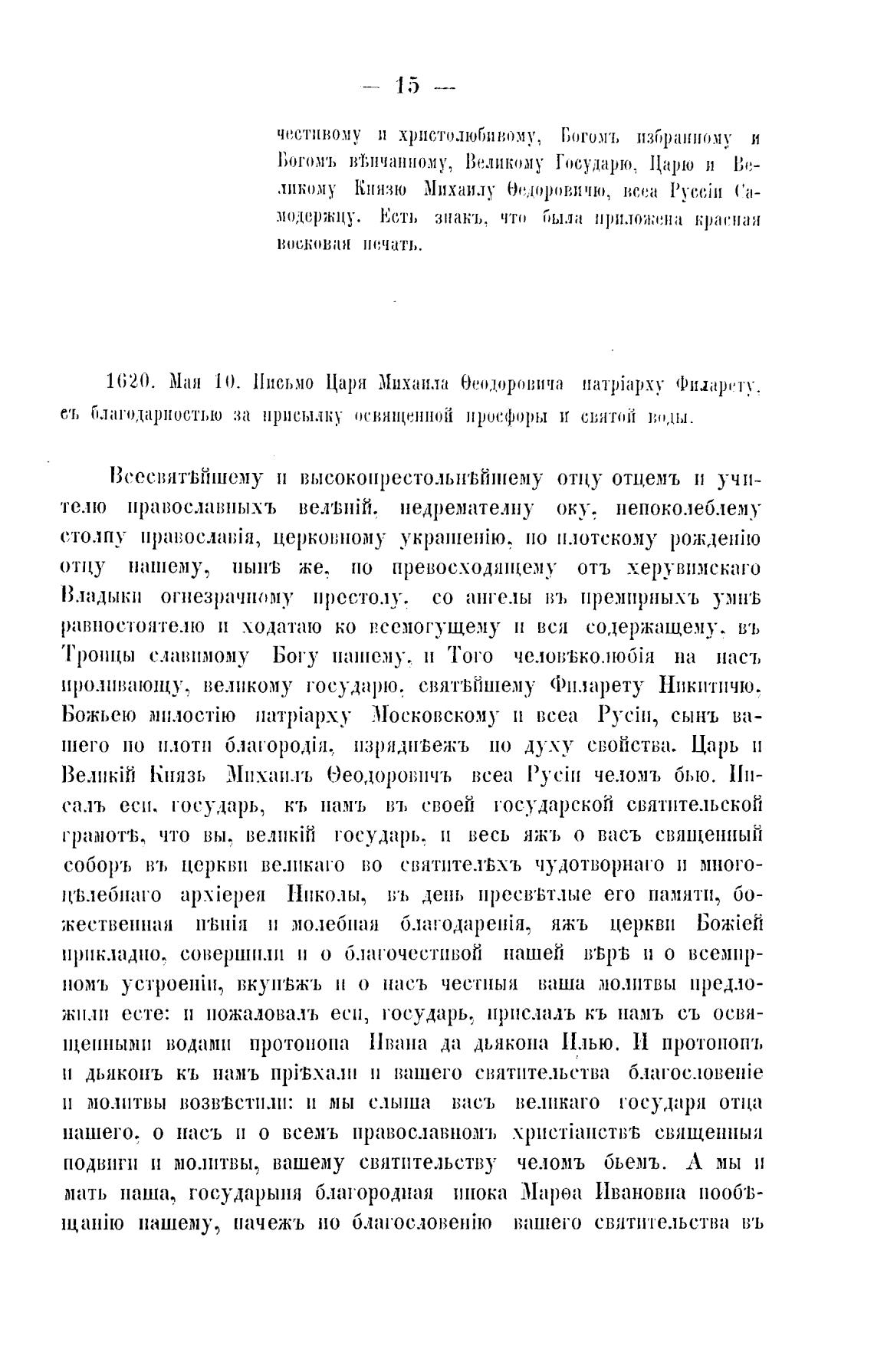 1620. Ман 10. Письмо Царн Михаила б)еодоровича ([)јпарету.