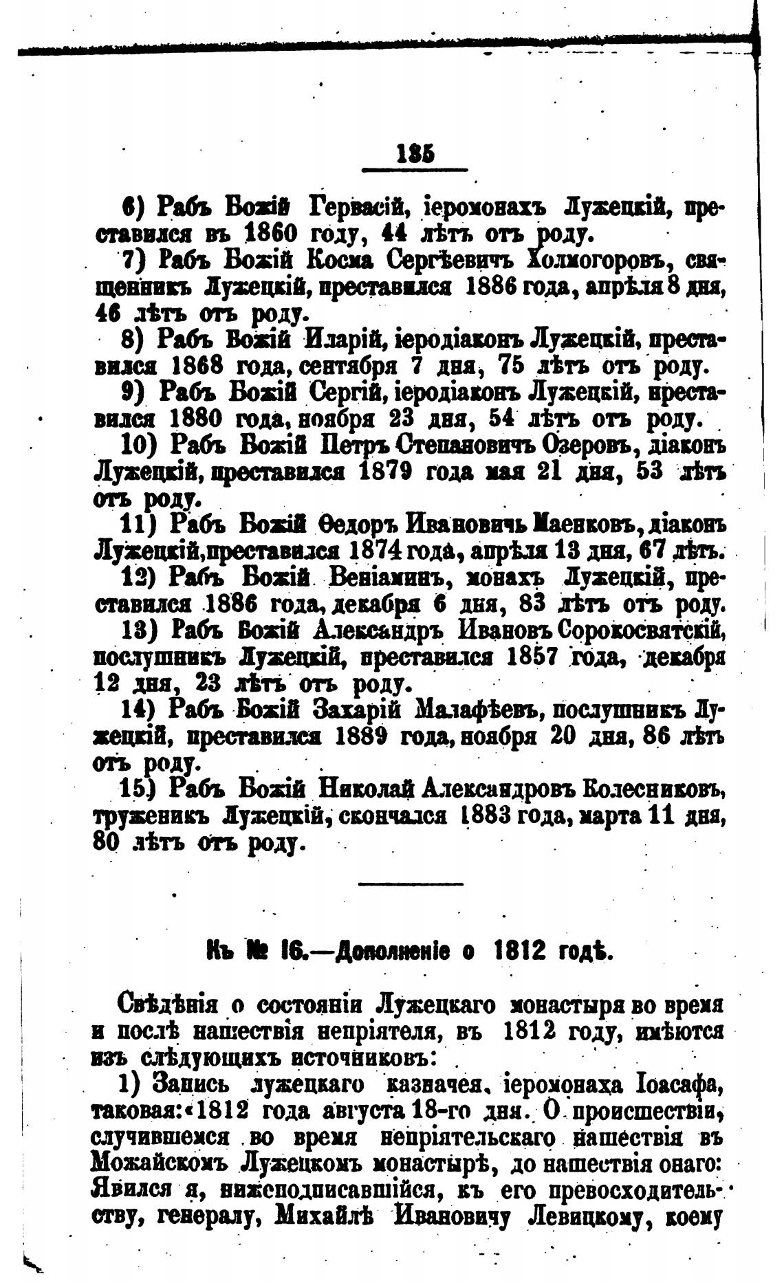 Можайскомъ Лужецкомъ монастыр±, до онаго: