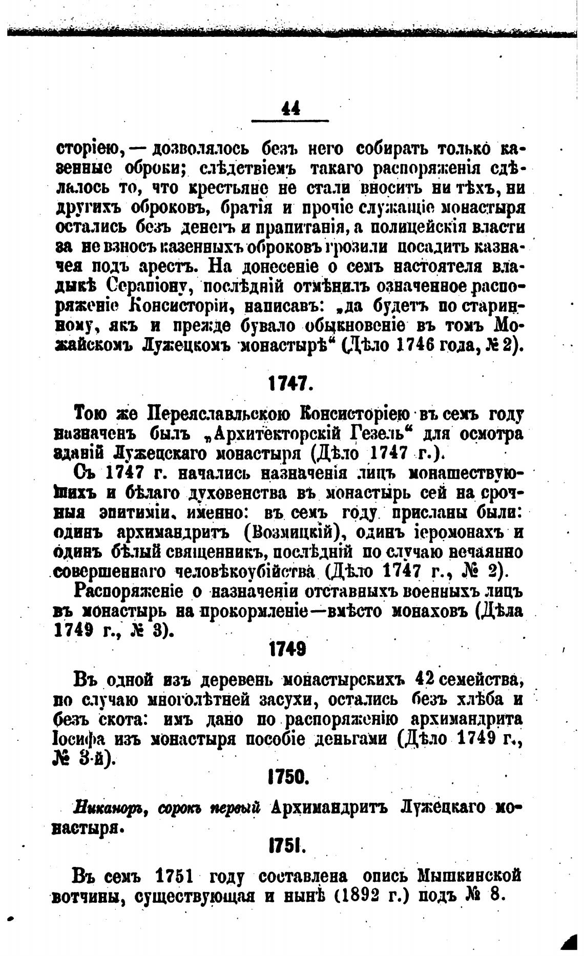 Сь 1747 г. начались лицъ монашествую-