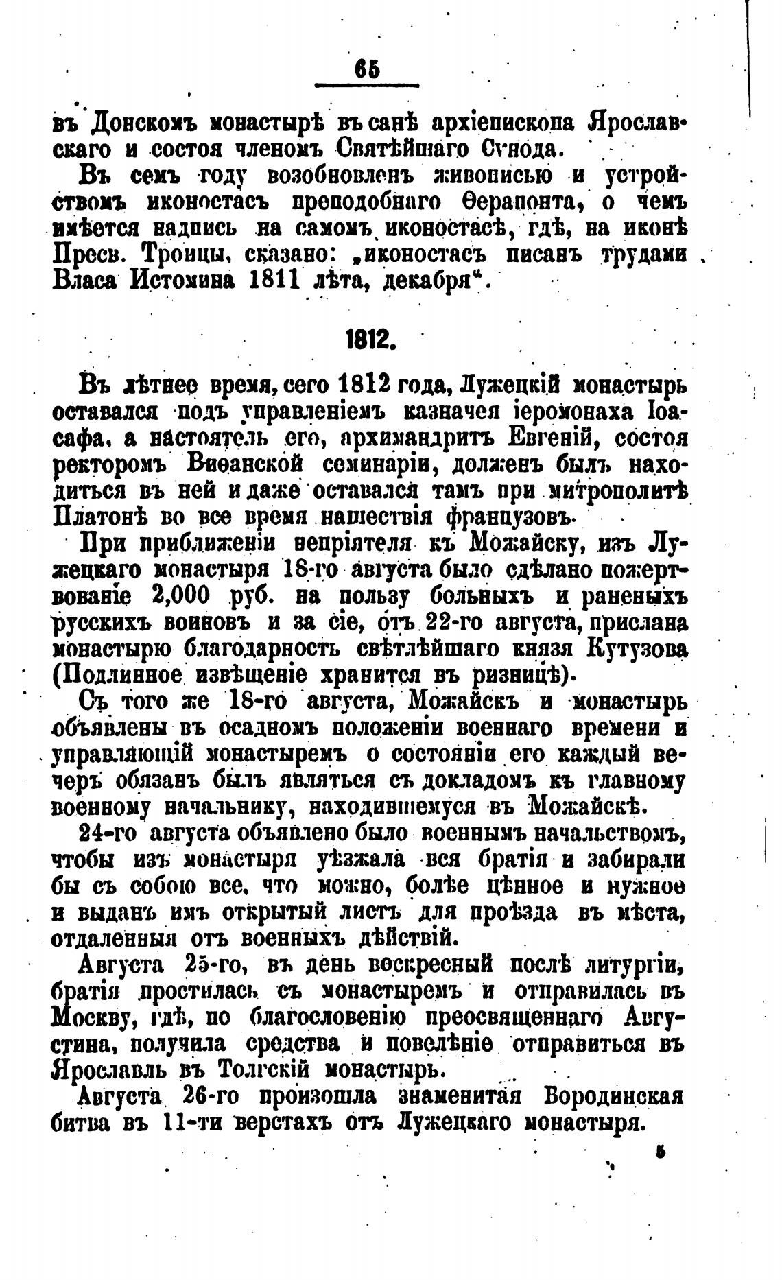 Въ аттвее врехя, сего 1812 года, монастырь