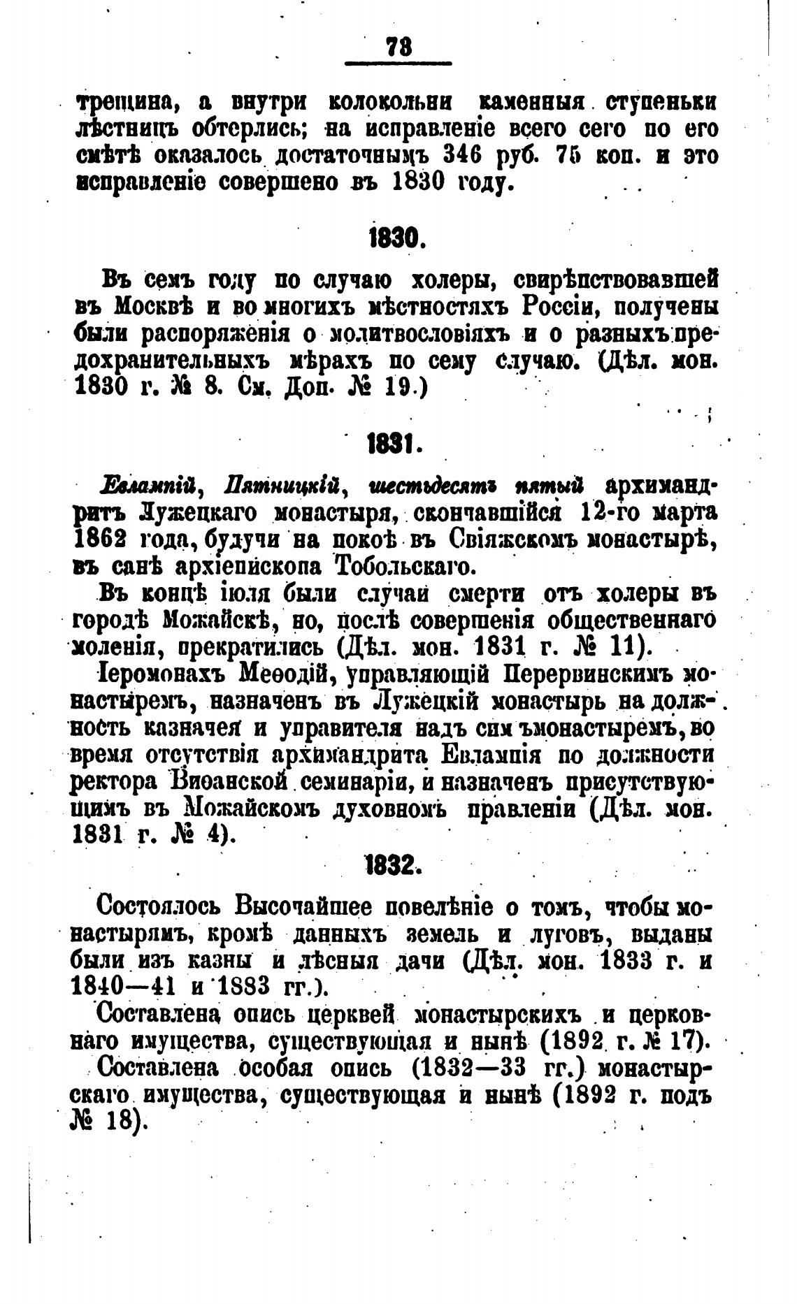 прекратились (ТА. мон. 1831 г. 11).