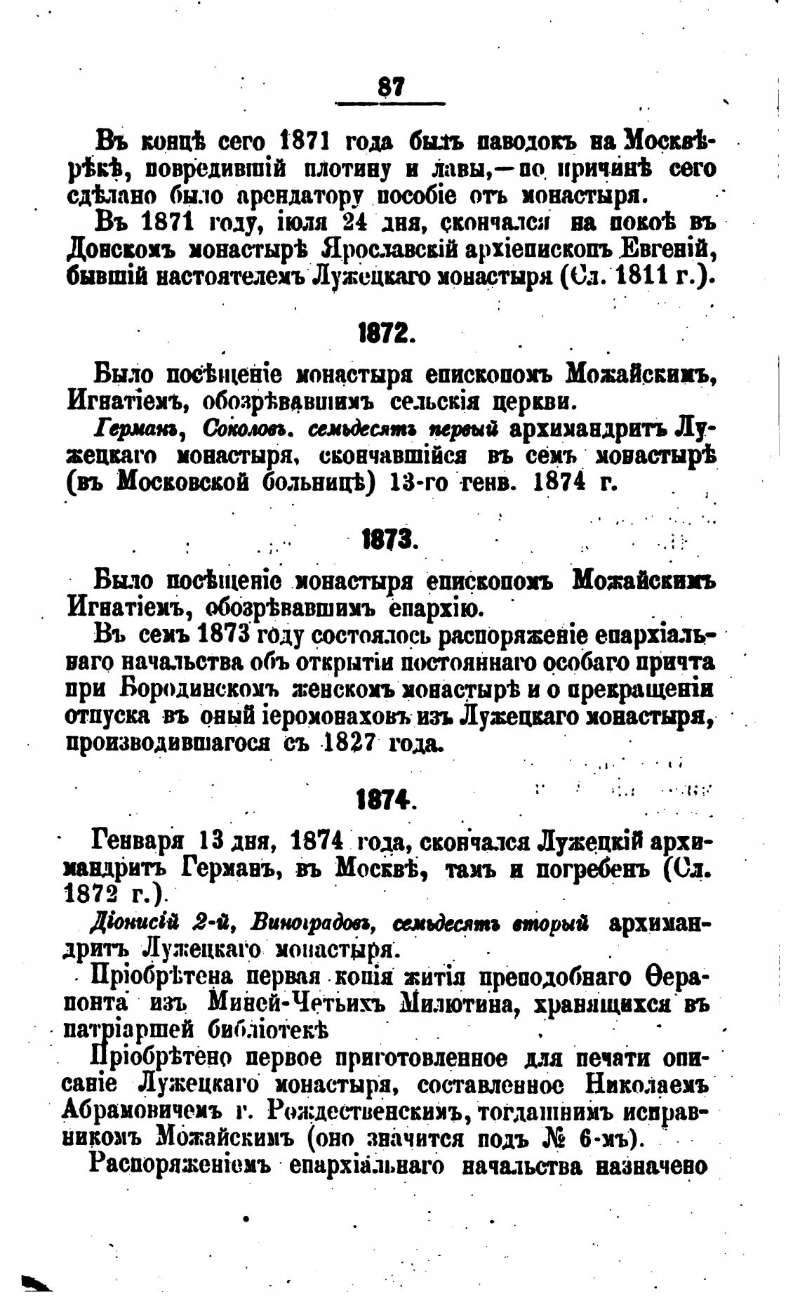 Въ сего 1871 года был паводокъ ва Мосвй•