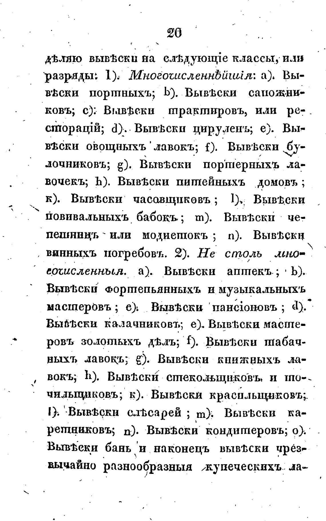 вочекъ; h). Вывевски питейныхъ домовъ ;