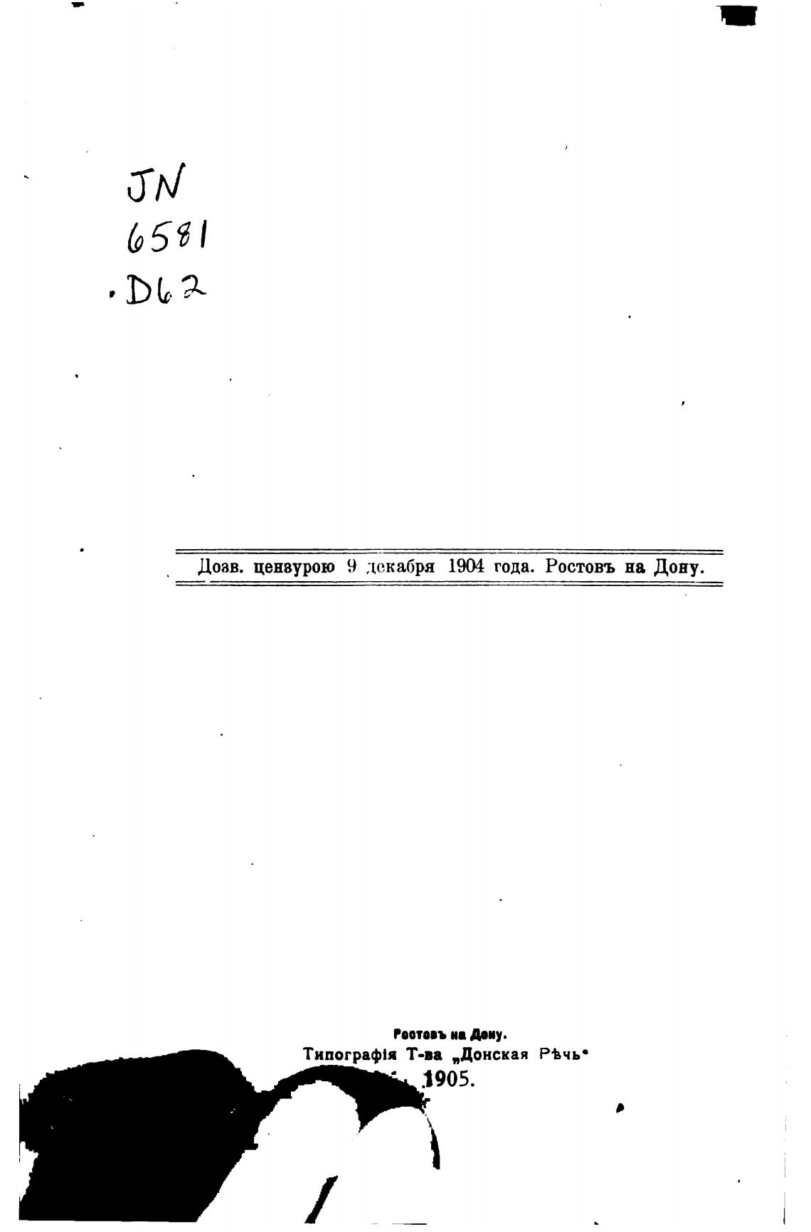 Доав. цензурою 9 декабря 1904 года. Ростовъ на Дону.
