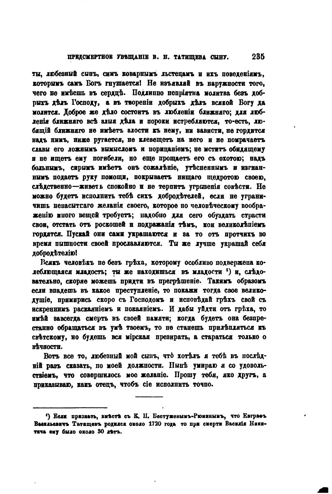 ПРЕДСМЕРТНОЕ УВ•ВЩАТВ В. Н. ТАТИЩЕВА СЫНУ.