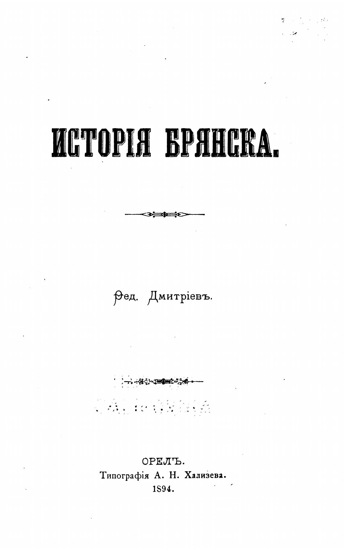 История Брянска. - Дмитриев Ф.