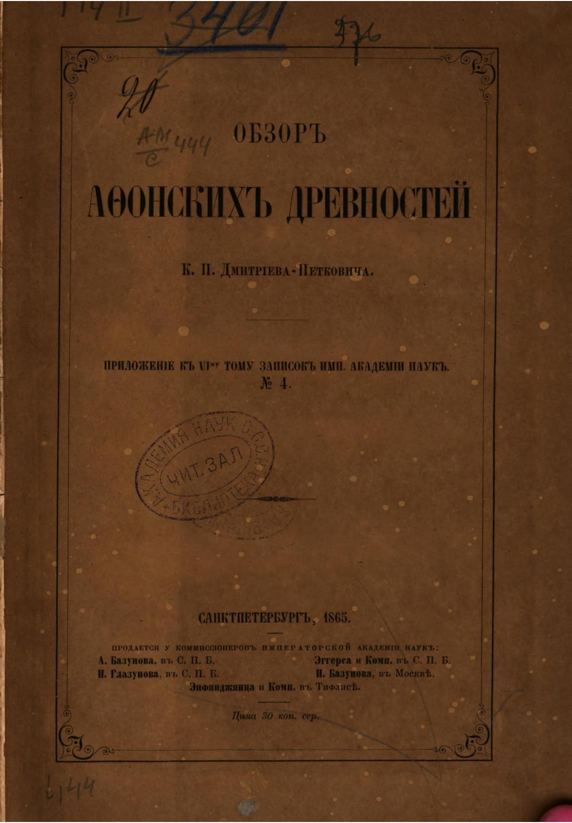 ПРОДАЕТСЯ У КОМИИСС'ОПЕГОВЪ ИМПЕГ АТОРСКОЙ АКАДЕНШ, НАУКТ,: