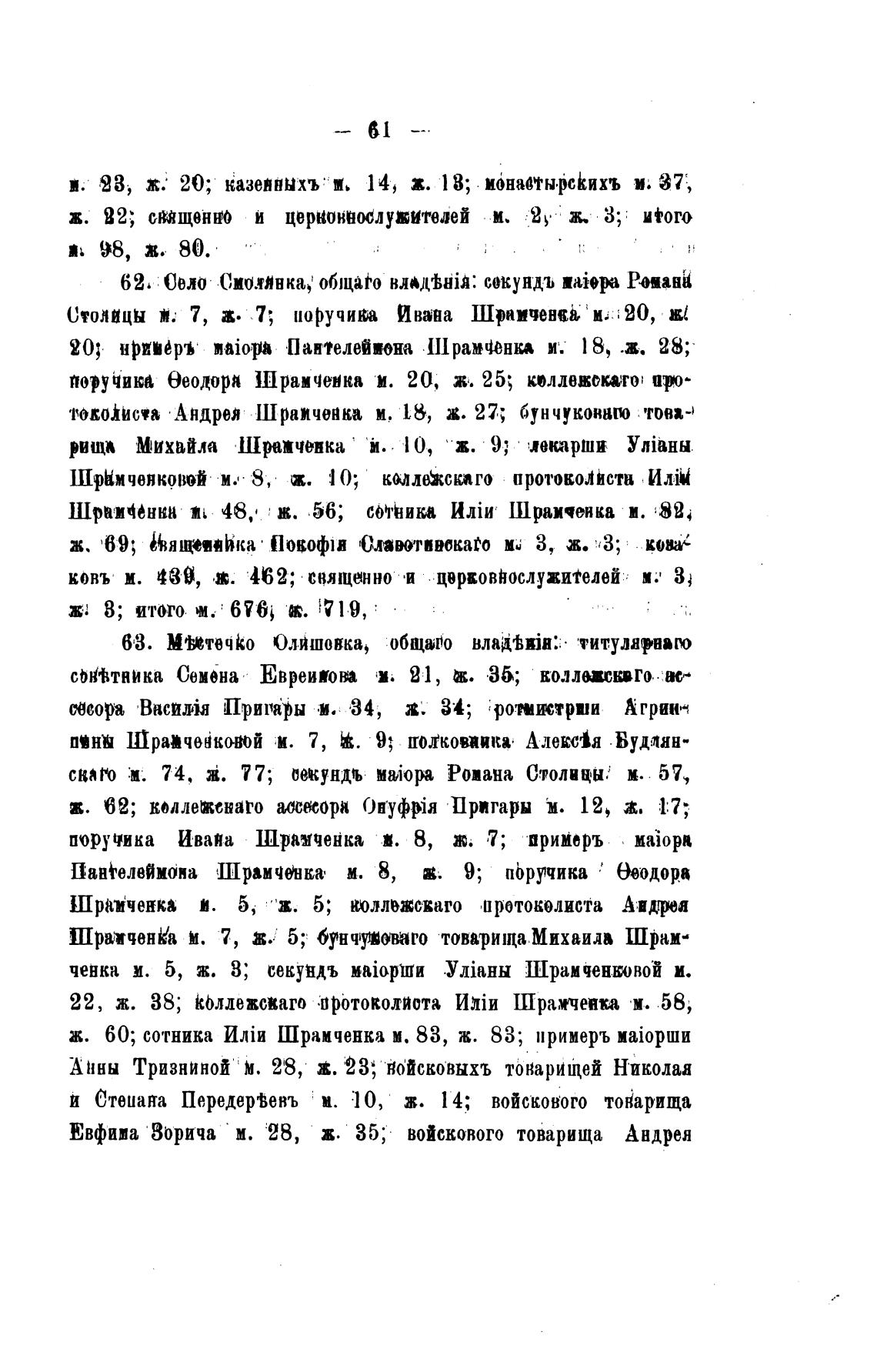 ж. 60; сотника Шрамченка м. 83, ж. 83; примерь