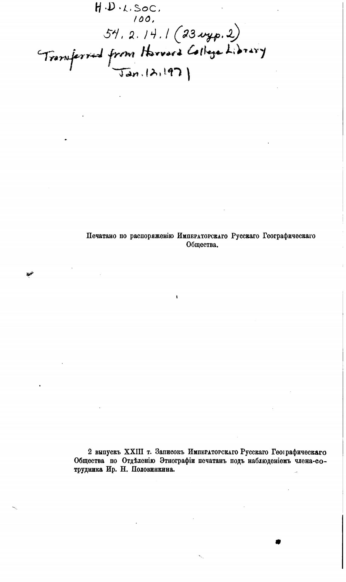 2 выпускъ XXIII т. Запиеокъ ИМПЕРАТОРСЕАГО Русскаго Гет рафичесиго