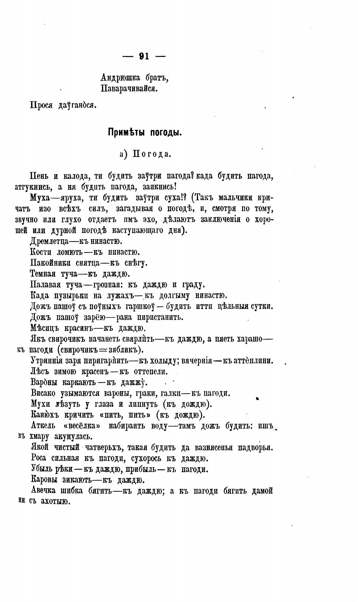 Явь свирочикъ начанеть свярлйть—къ даждю, а пноть харашо—