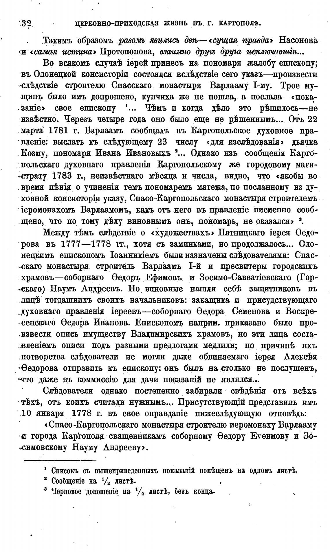 марта' 1781 г. Варлаамъ сообщалъ въ Каргопольское духовное пра-