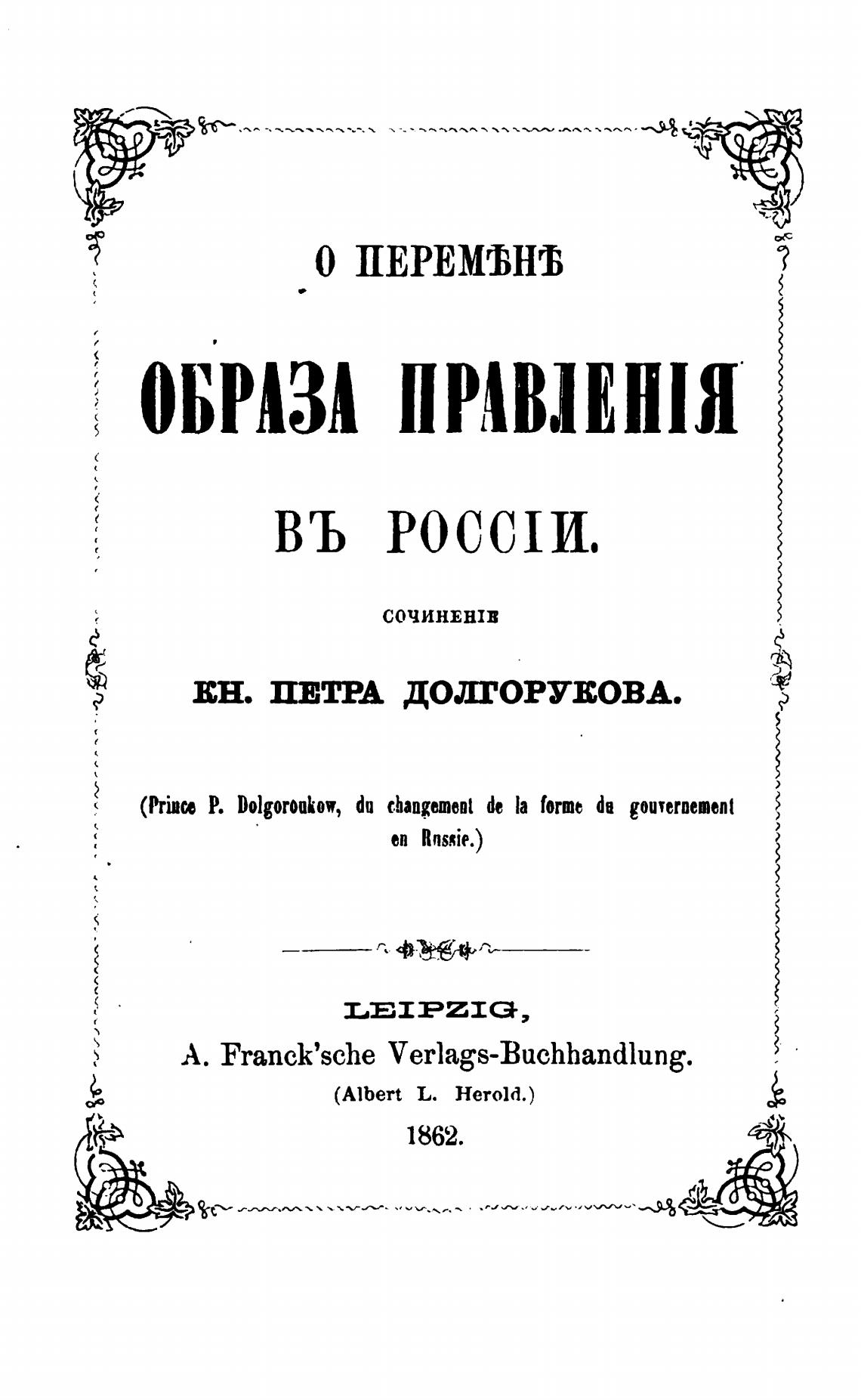(Prine Р. Dolgoroakow, do c.hanpment de la forme da gouvernement