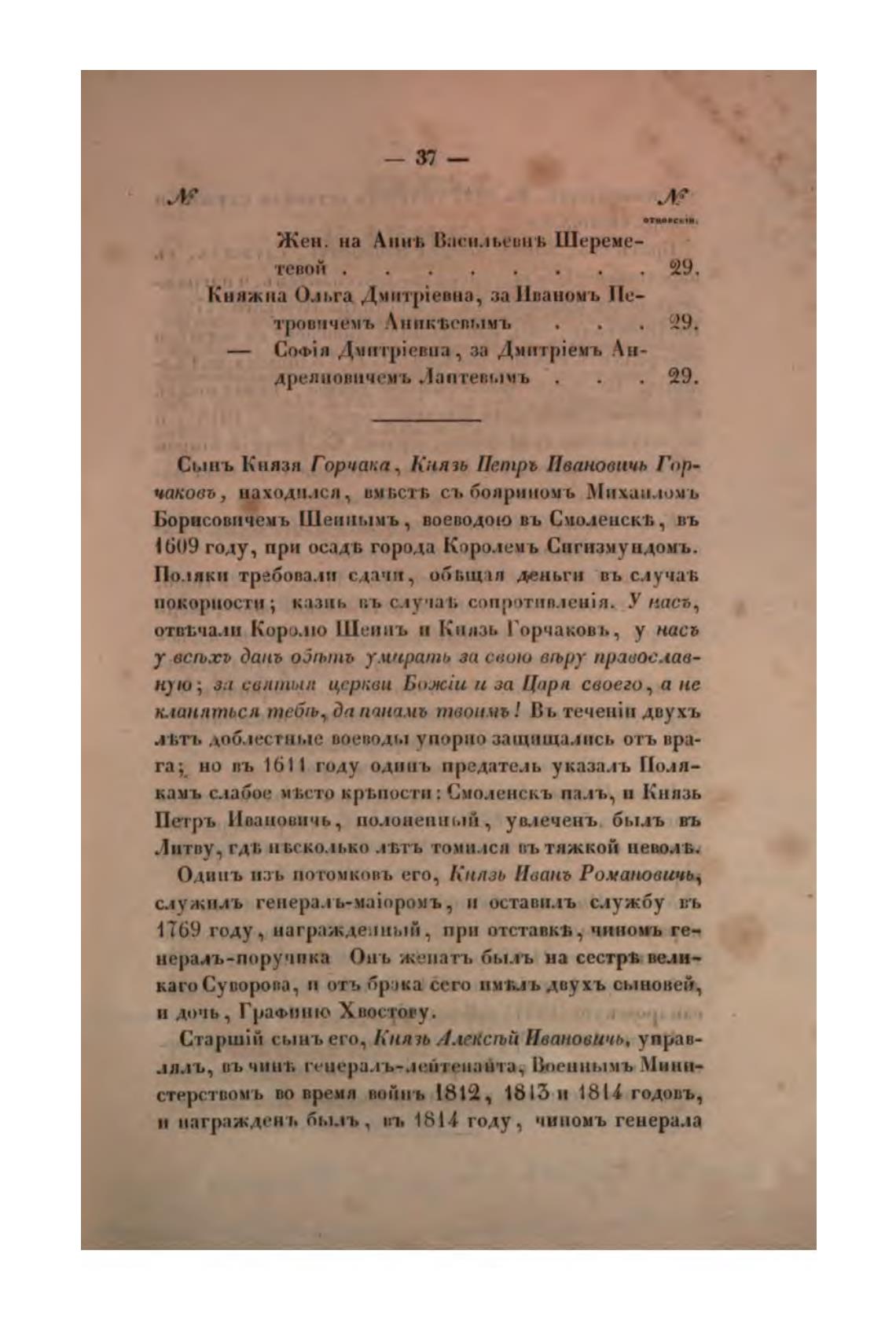 Сынъ Князя Горчака, Князь Петрь Ивановнць Гор-