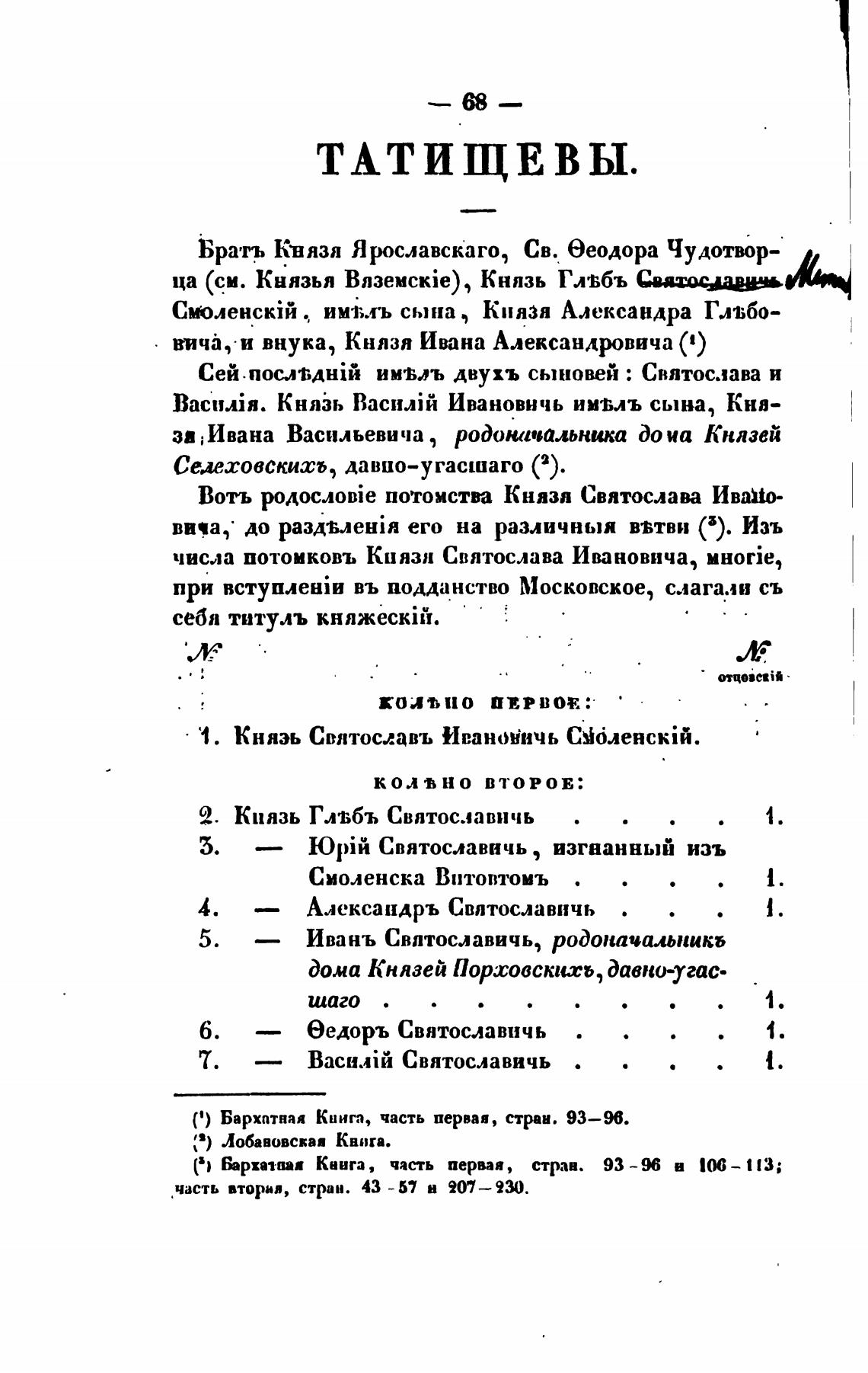 числа потомковъ Князя Святослава Ивановича, MHorie,