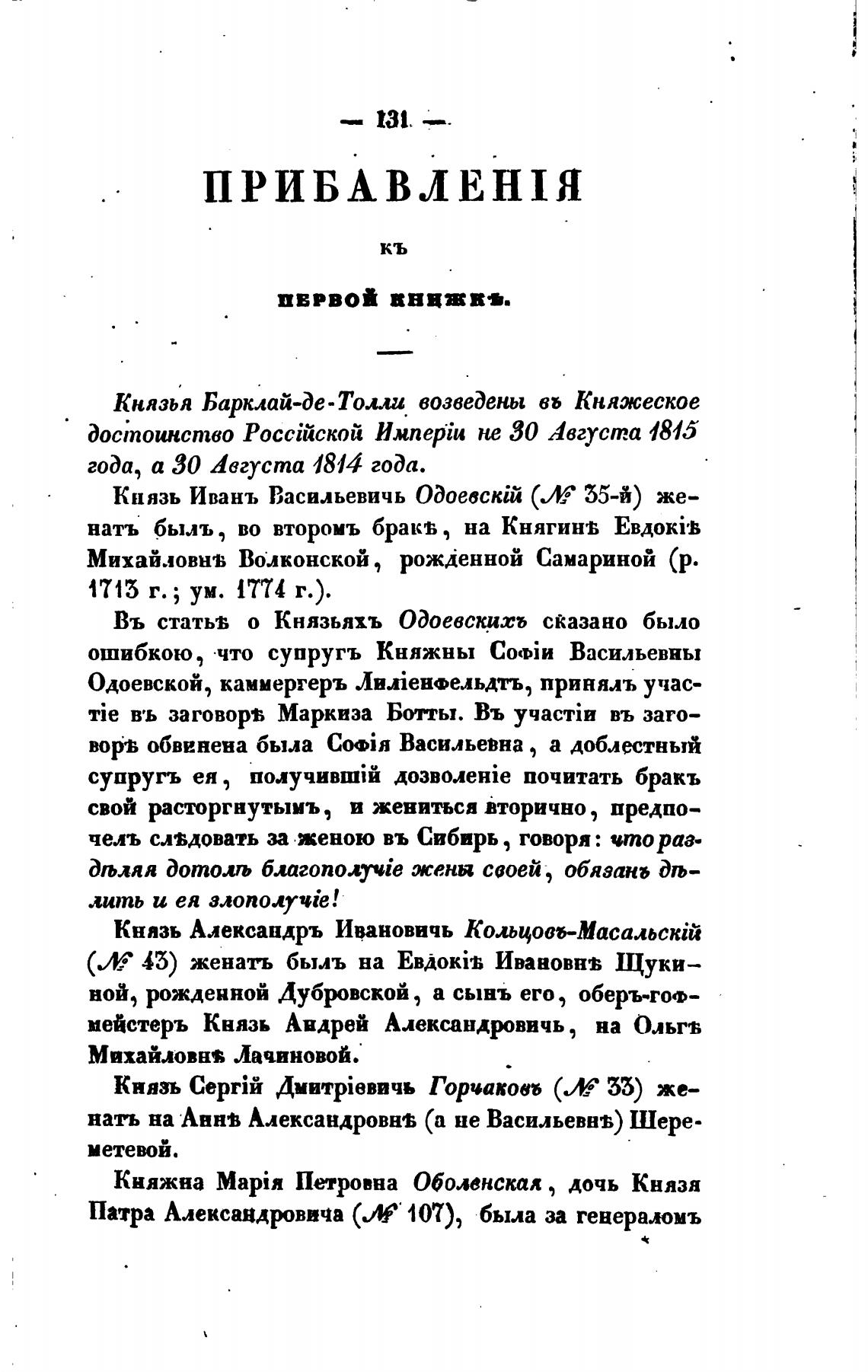 Въ статьв о Князьяхъ Одоевскихъ сказано было