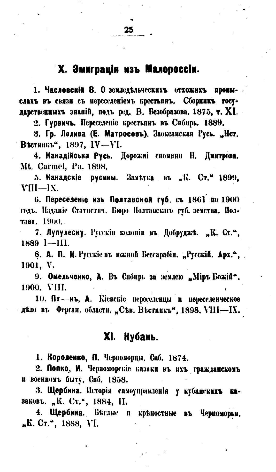 Х. Эмиграц!я изъ Малоросс1и.